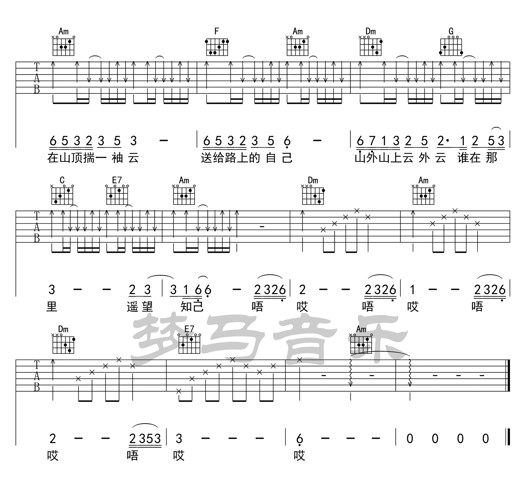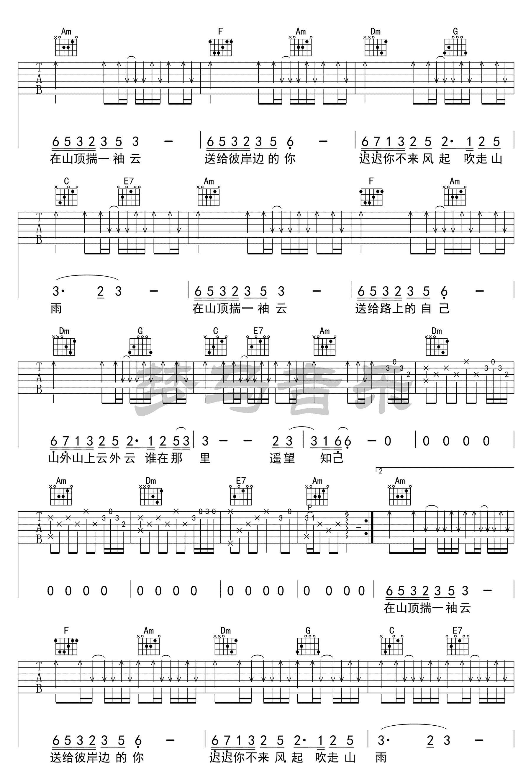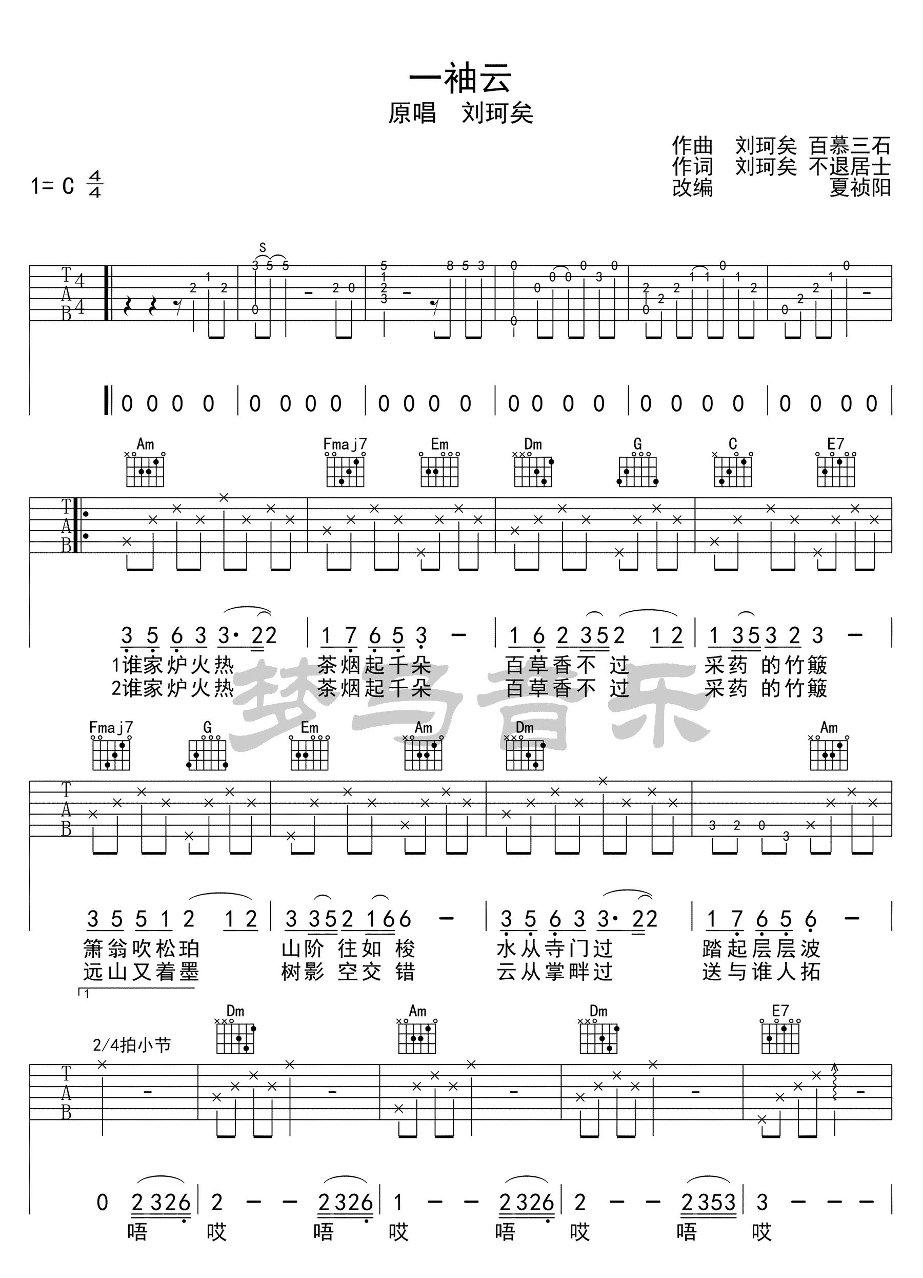 当前位置:琴谱网>吉他弹唱>一袖云 C调