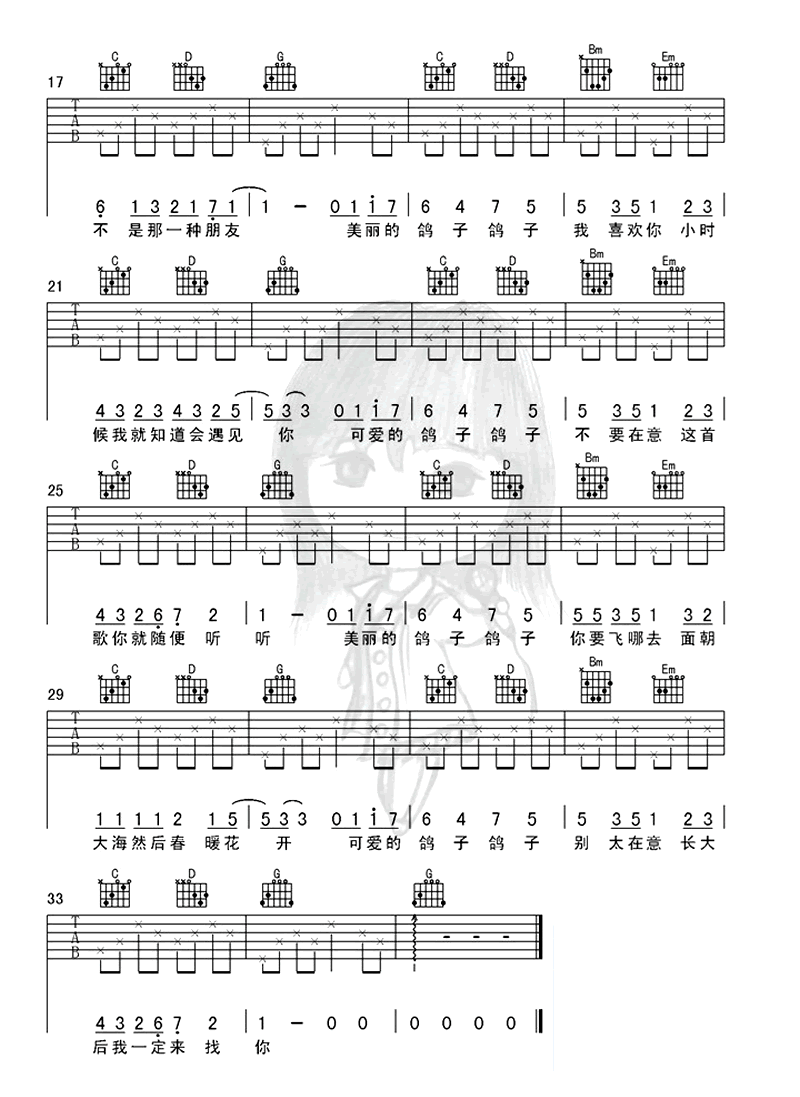 当前位置:琴谱网>吉他弹唱>鸽子 徐秉龙 G调