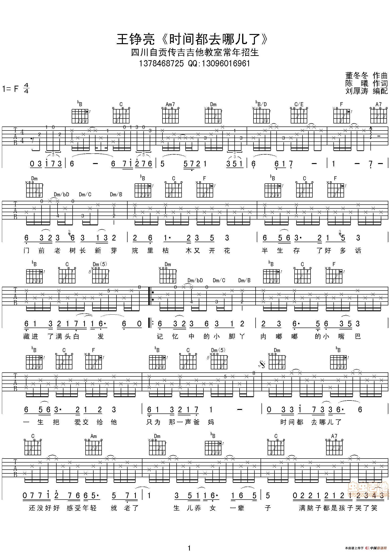 时间都去哪儿了吉他谱 - 王铮亮 - 吉他弹唱谱