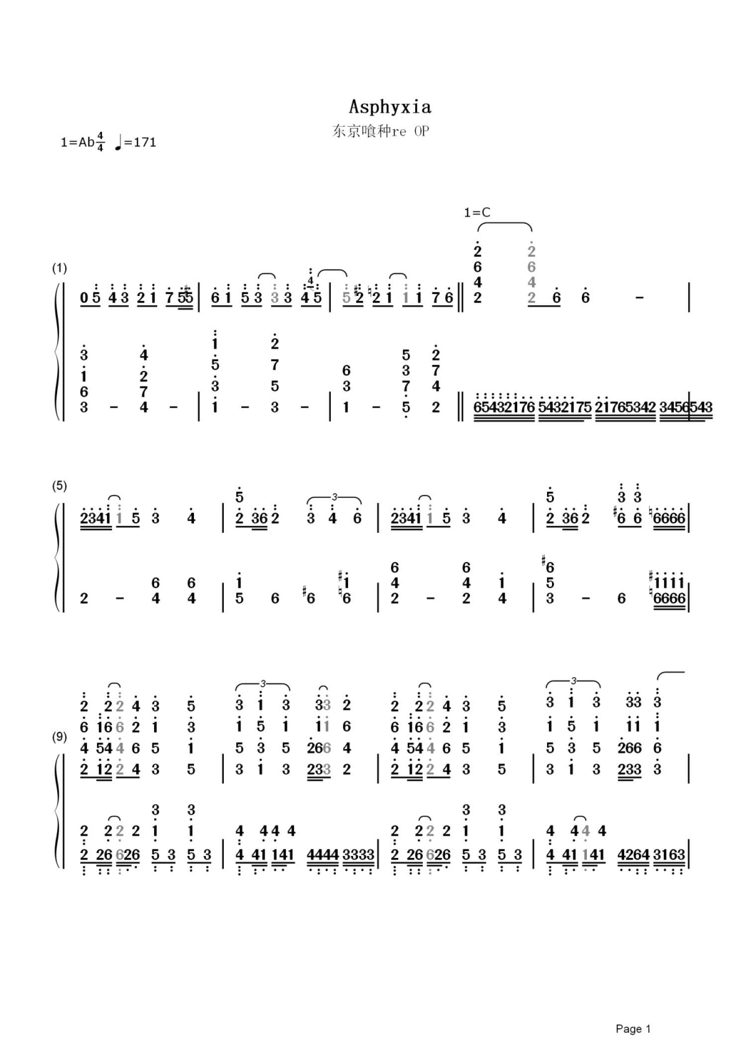 曲谱介绍: 东京喰种reOP《Asphyxia》歌词_简谱