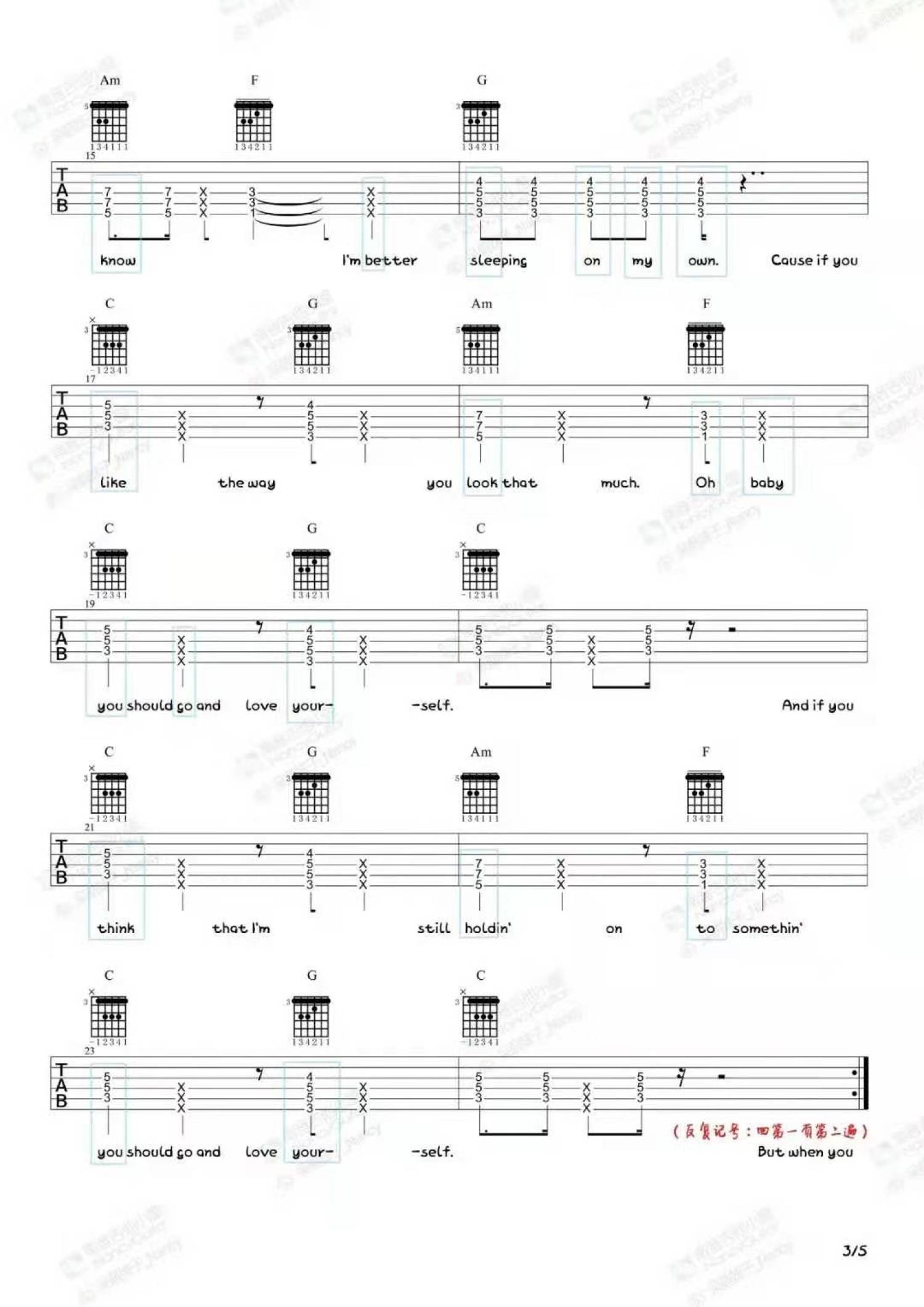 曲谱介绍: Justin Biebe《love yourself》吉他谱_吉他弹唱谱