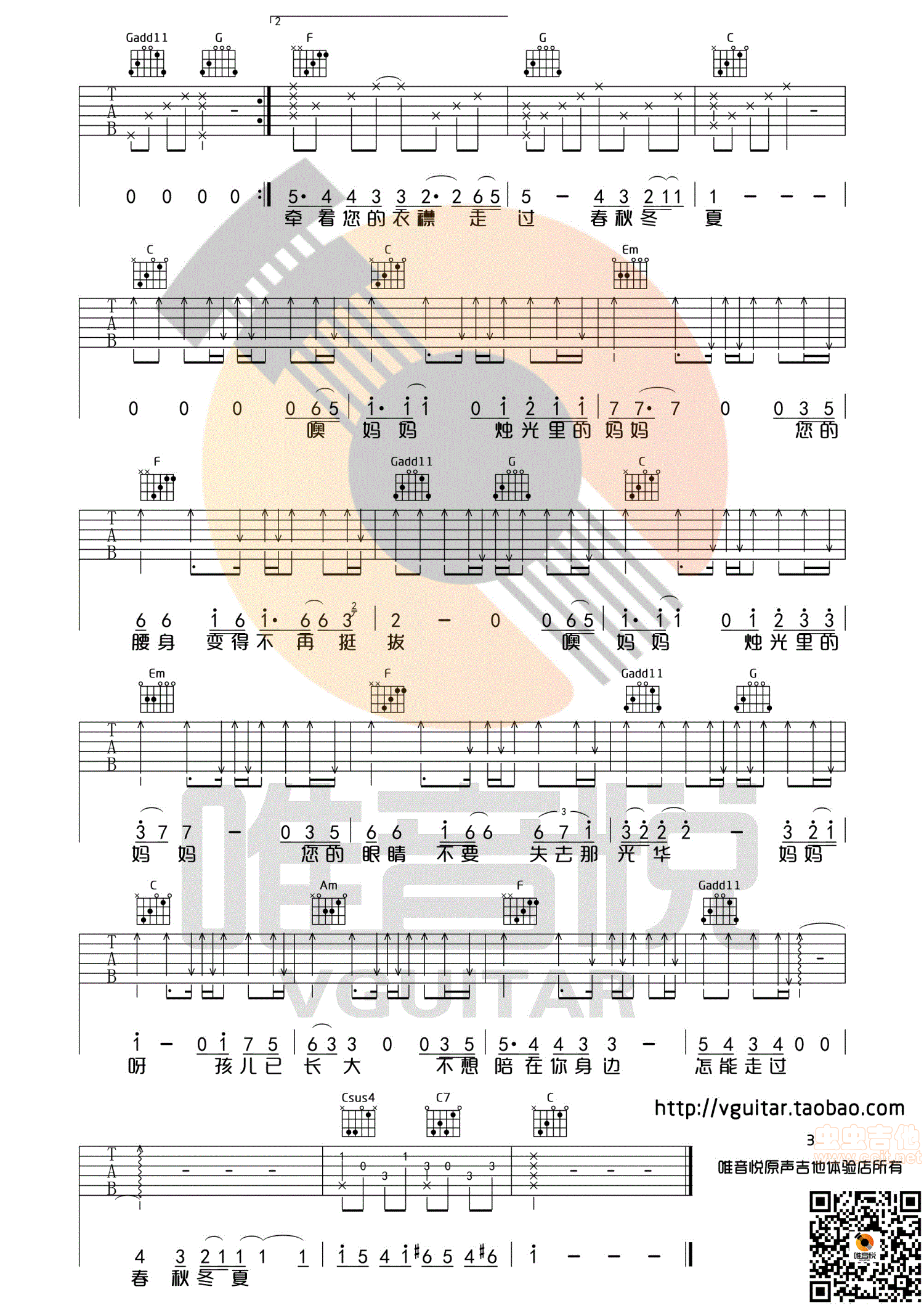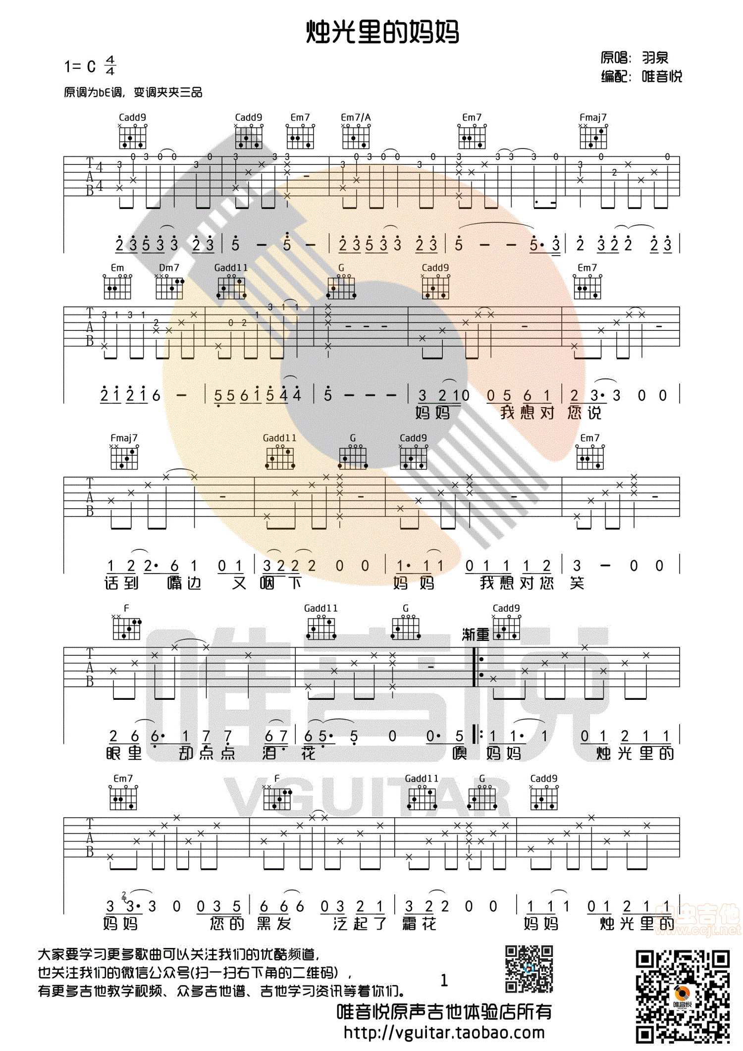 烛光里的妈妈 羽泉 简单版完整版吉他谱 - 烛光里的妈妈 - 吉他弹唱谱 - 原版