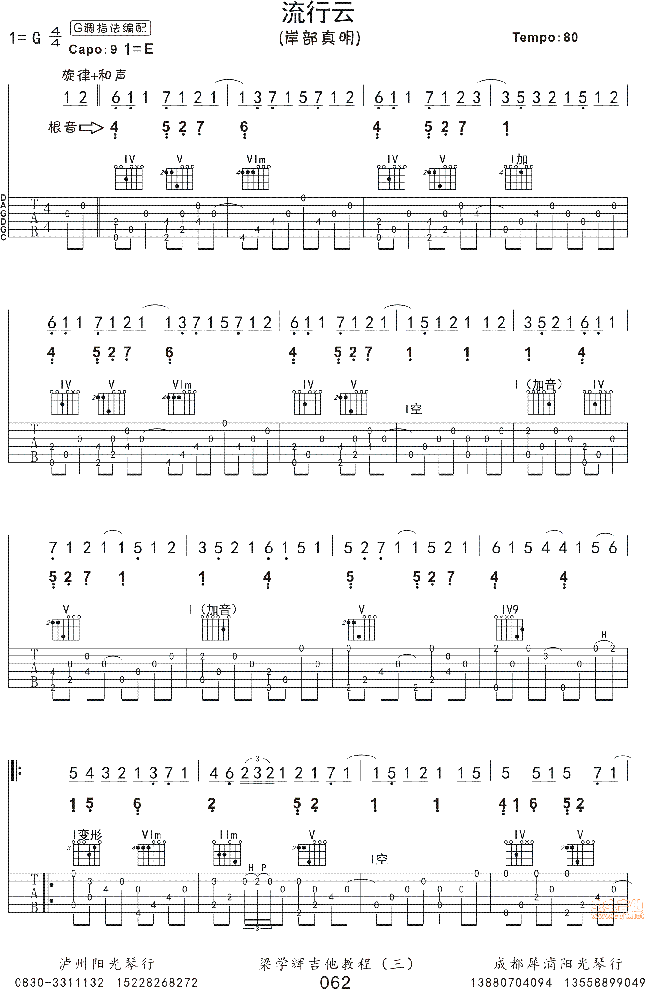 流行云吉他谱 - 岸部真明 - 吉他弹唱谱
