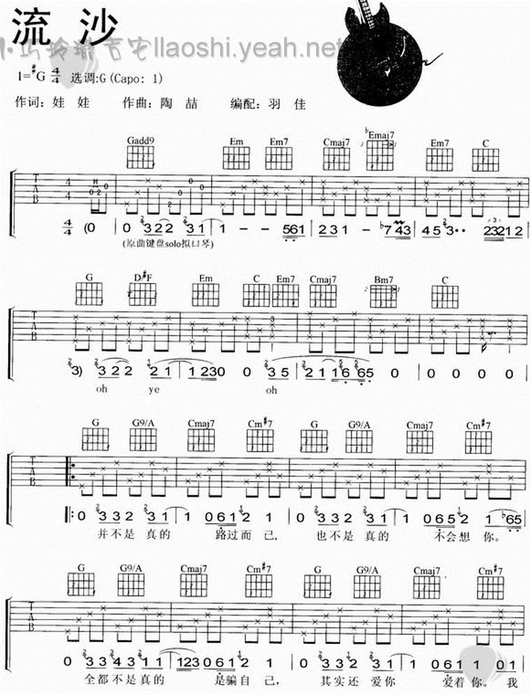 曲谱介绍: 《流沙》吉他弹唱谱,共有3张高清图谱。