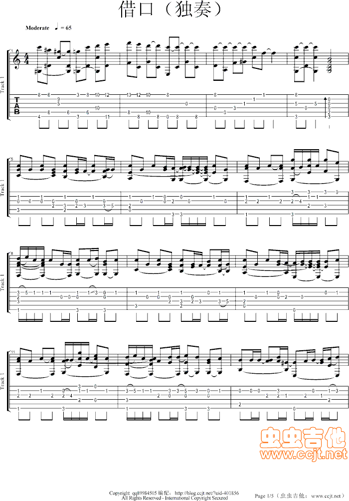 借口()吉他谱 - 吉他独奏谱