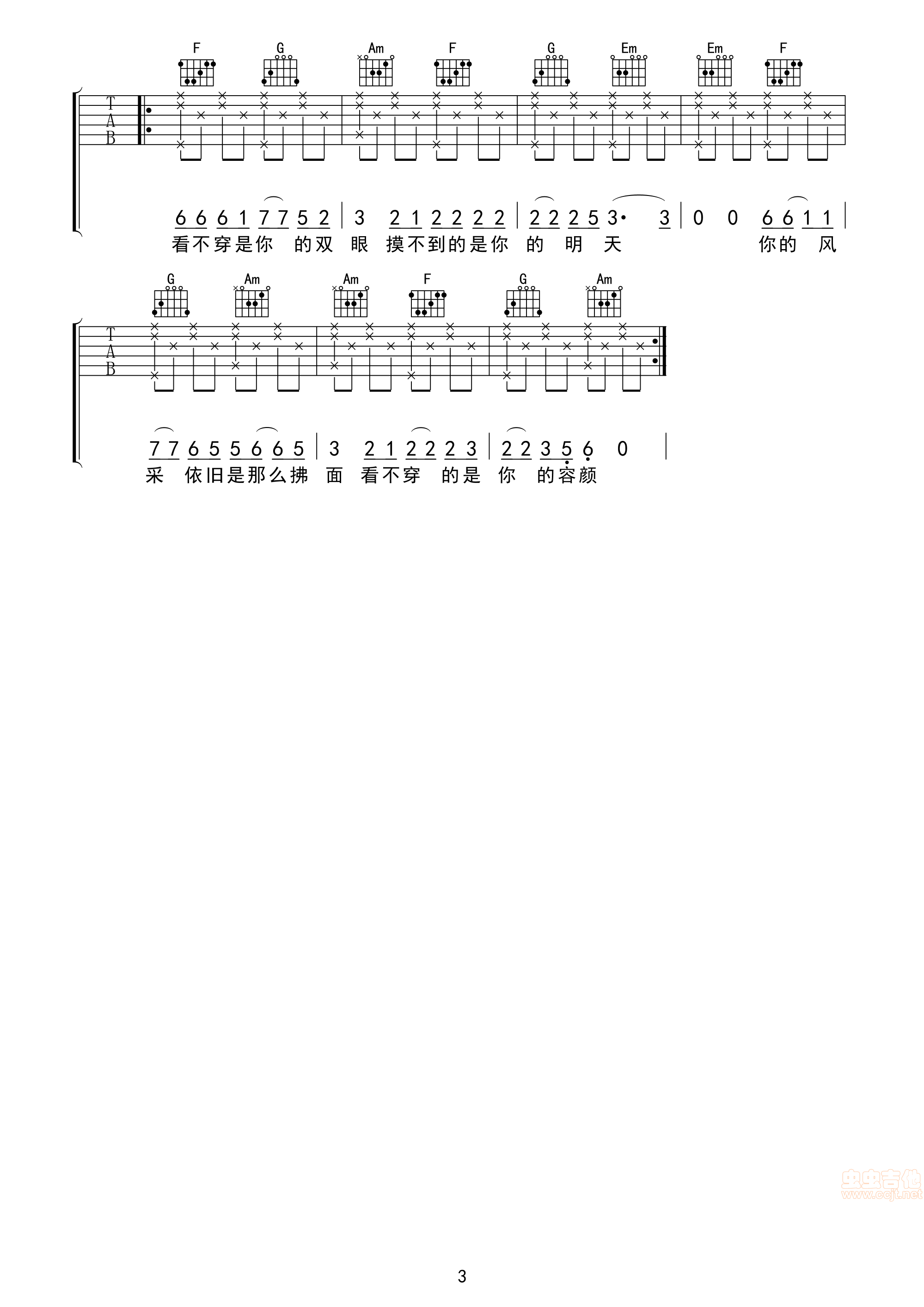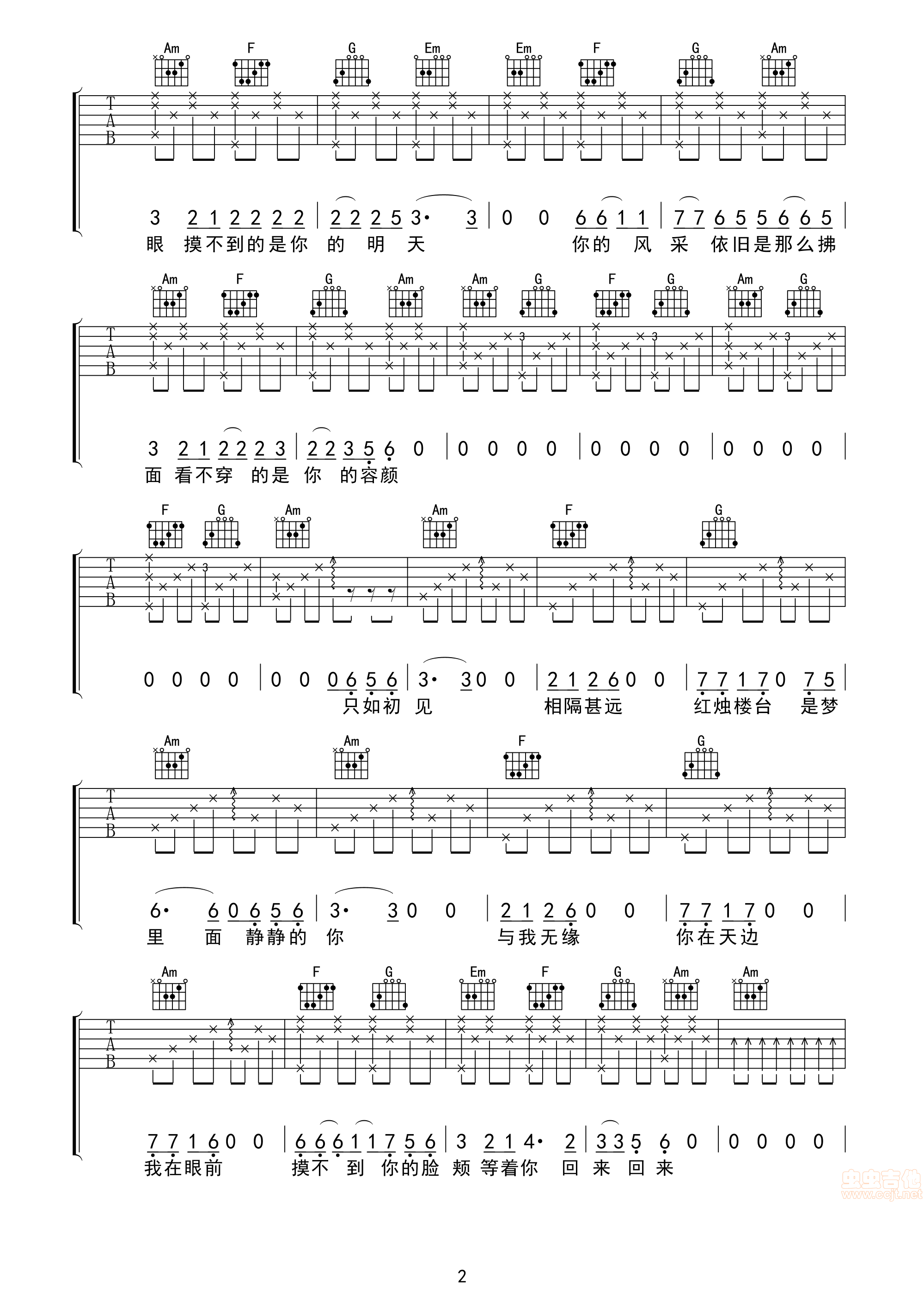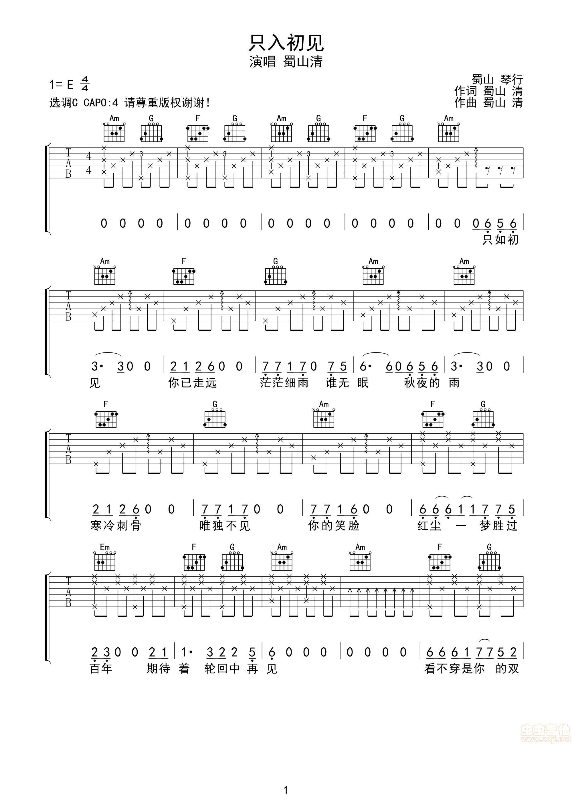 只如初见吉他谱 - 吉他弹唱谱