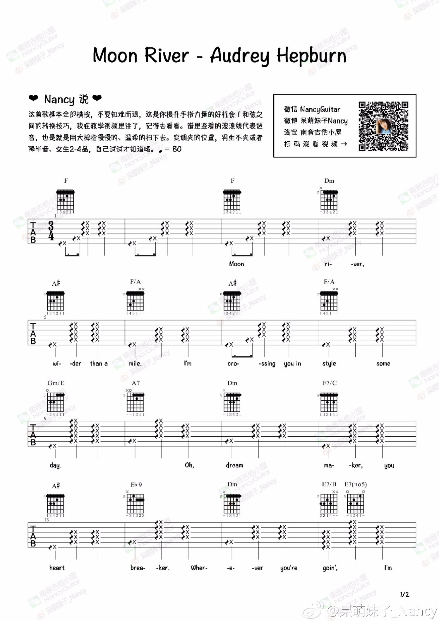 曲谱介绍: 《Moon River》吉他谱_吉他弹唱谱