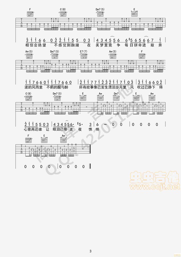 曲谱介绍: 友情岁月|郑伊健《友情岁月》吉他弹唱谱,共有3张高清图谱。