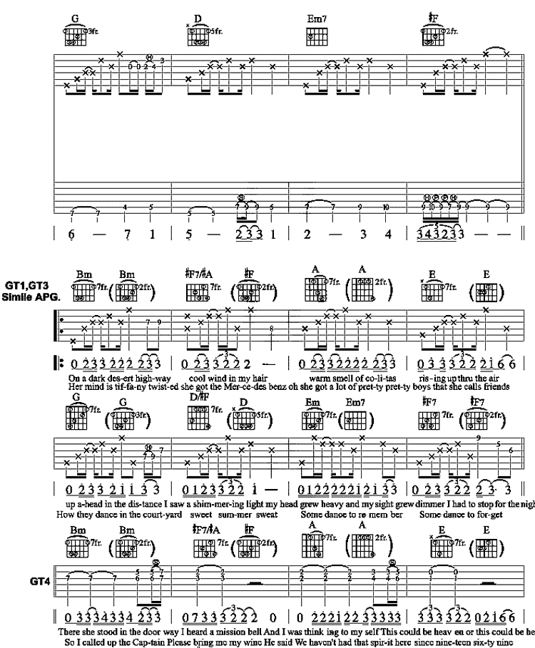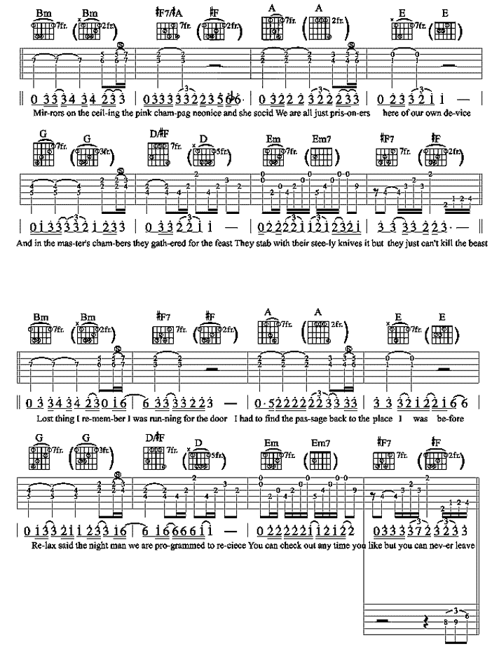 Hotel California吉他谱 - Hotel - 吉他弹唱谱