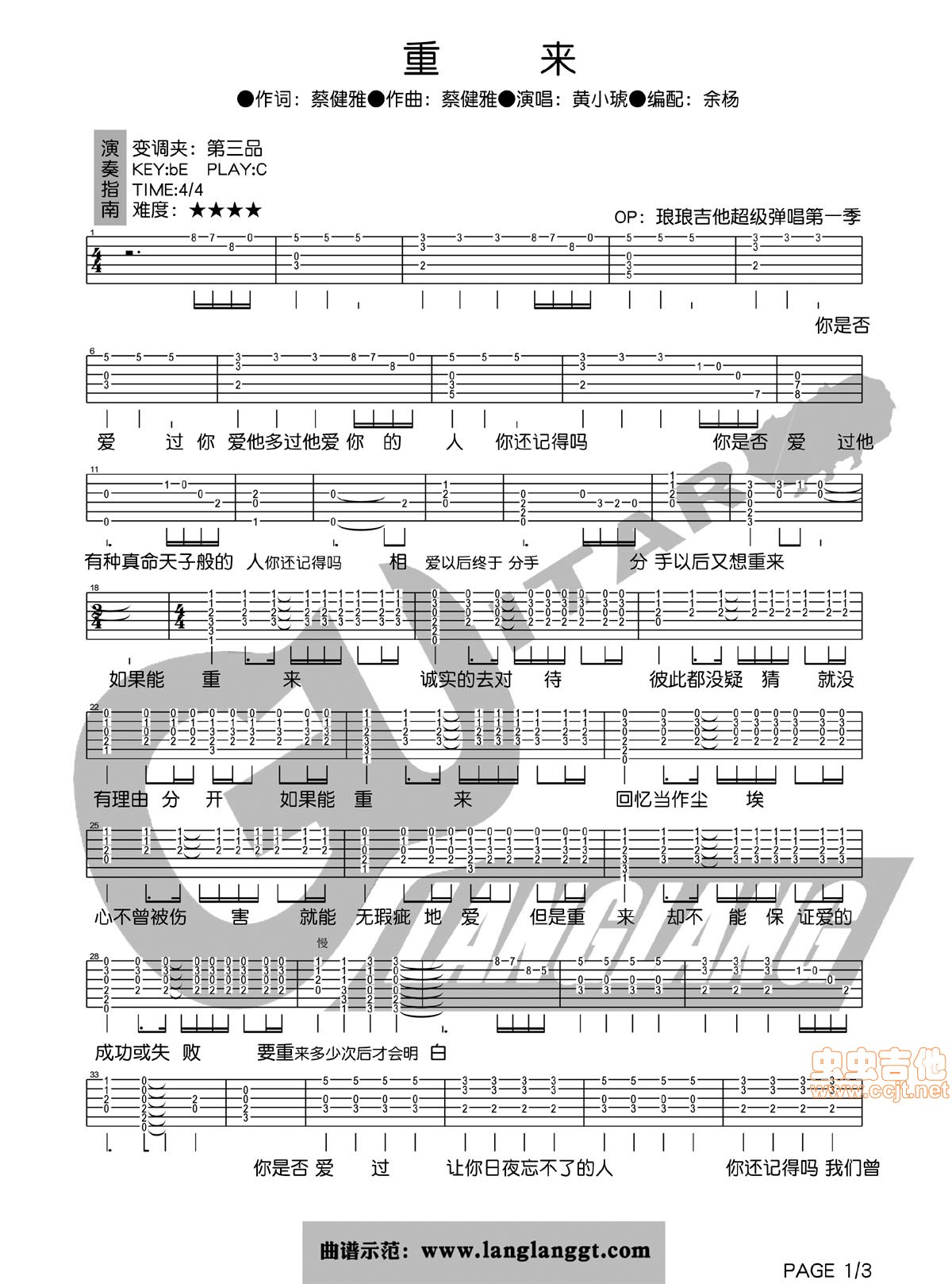 重来吉他谱 - 吉他弹唱谱