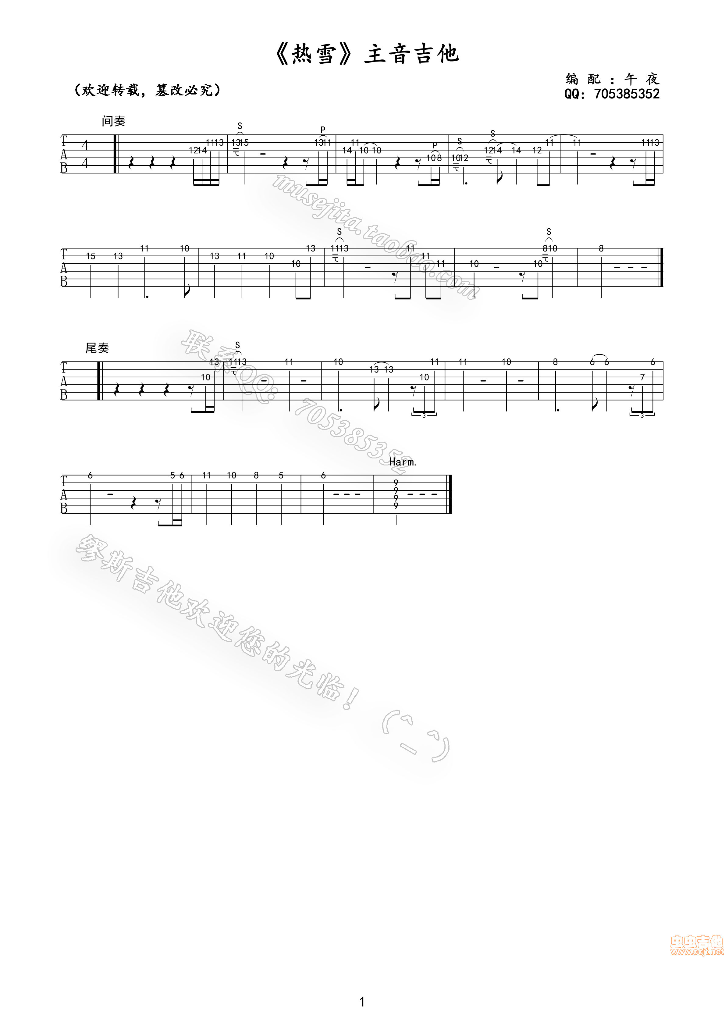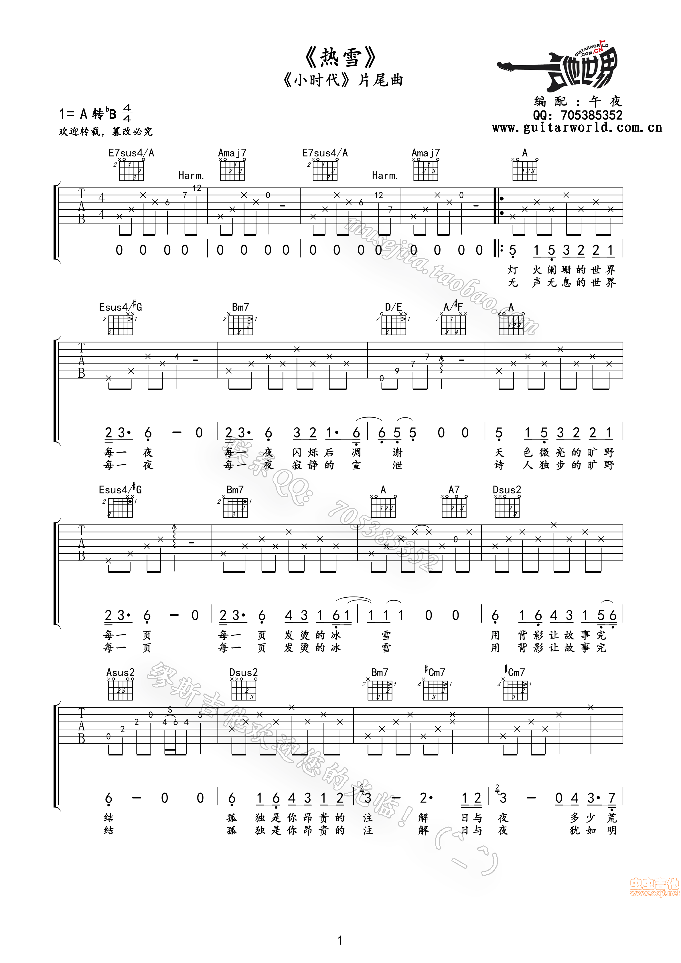热雪吉他谱 - 吉他弹唱谱