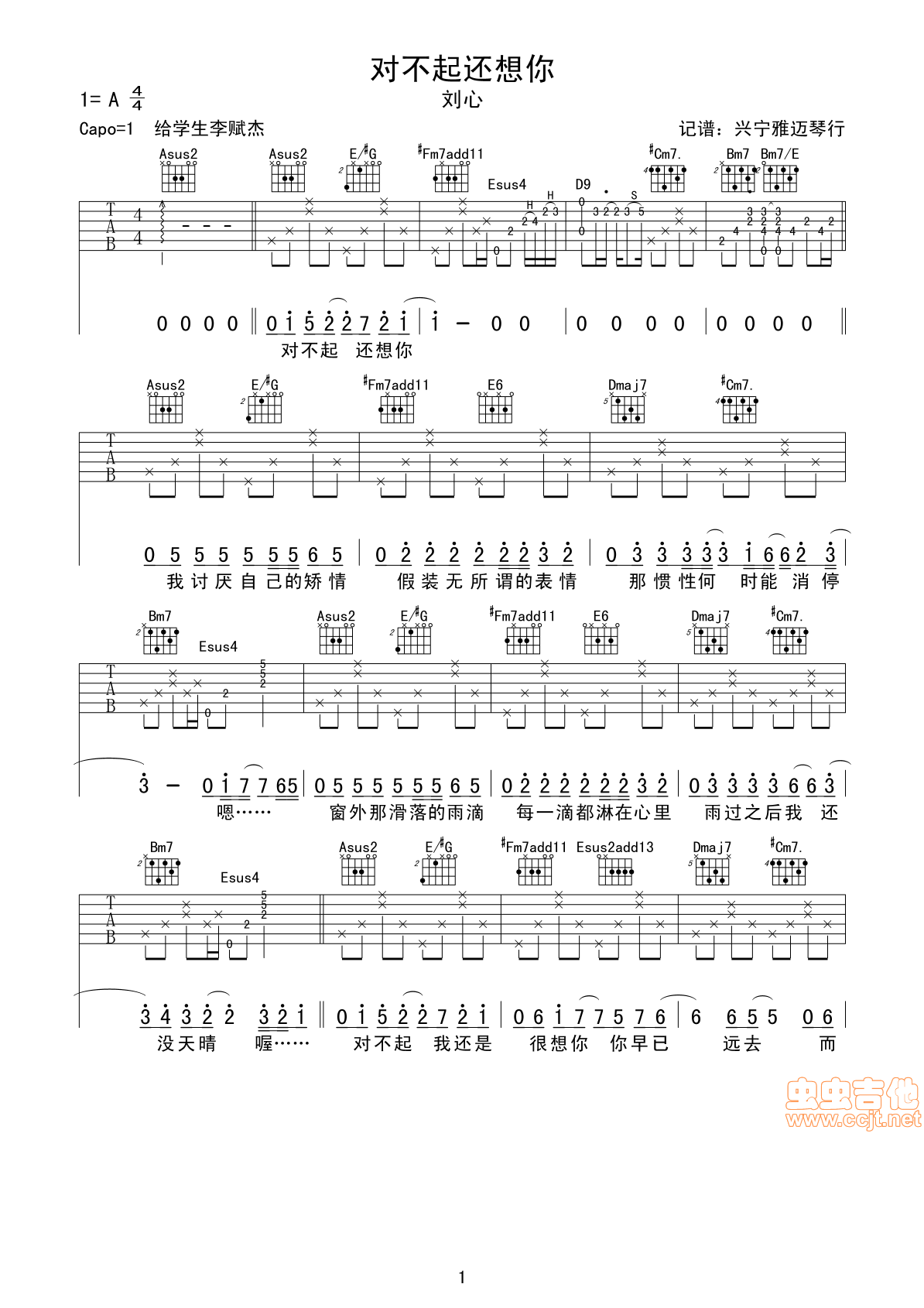 对不起还想你吉他谱 - 吉他弹唱谱