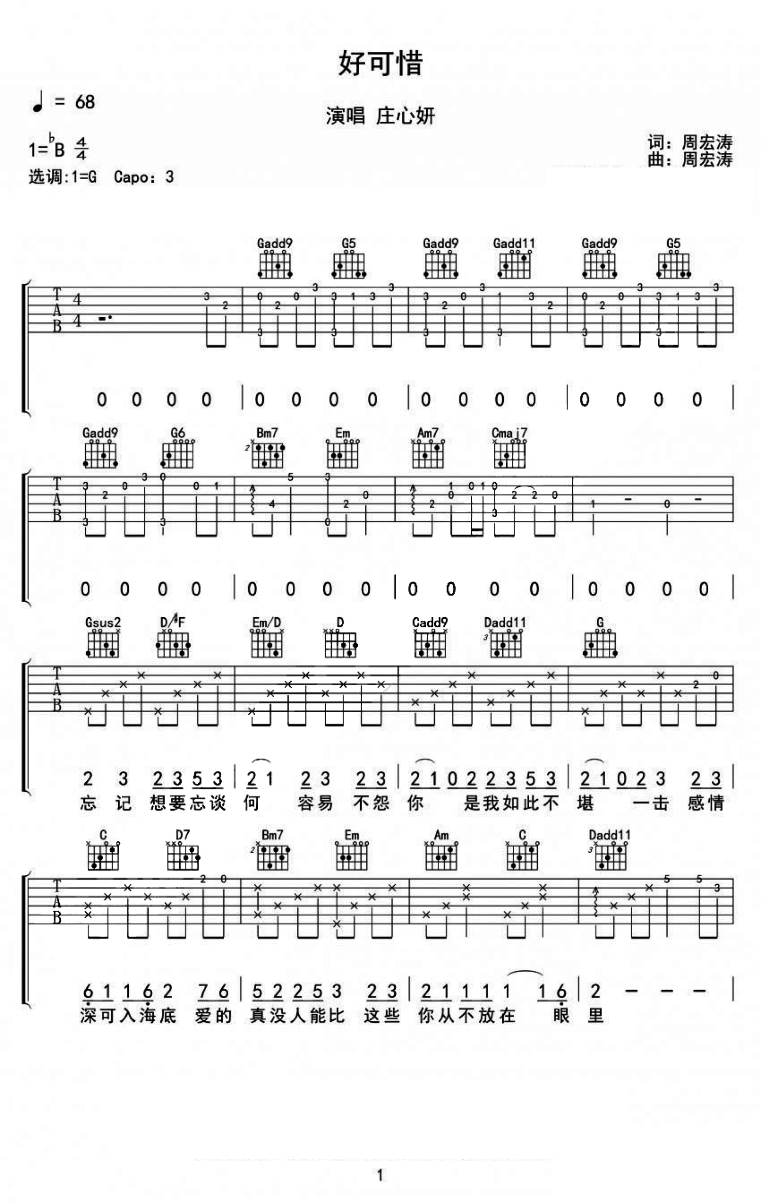 好可惜吉他谱 - 庄心妍 - G调吉他弹唱谱