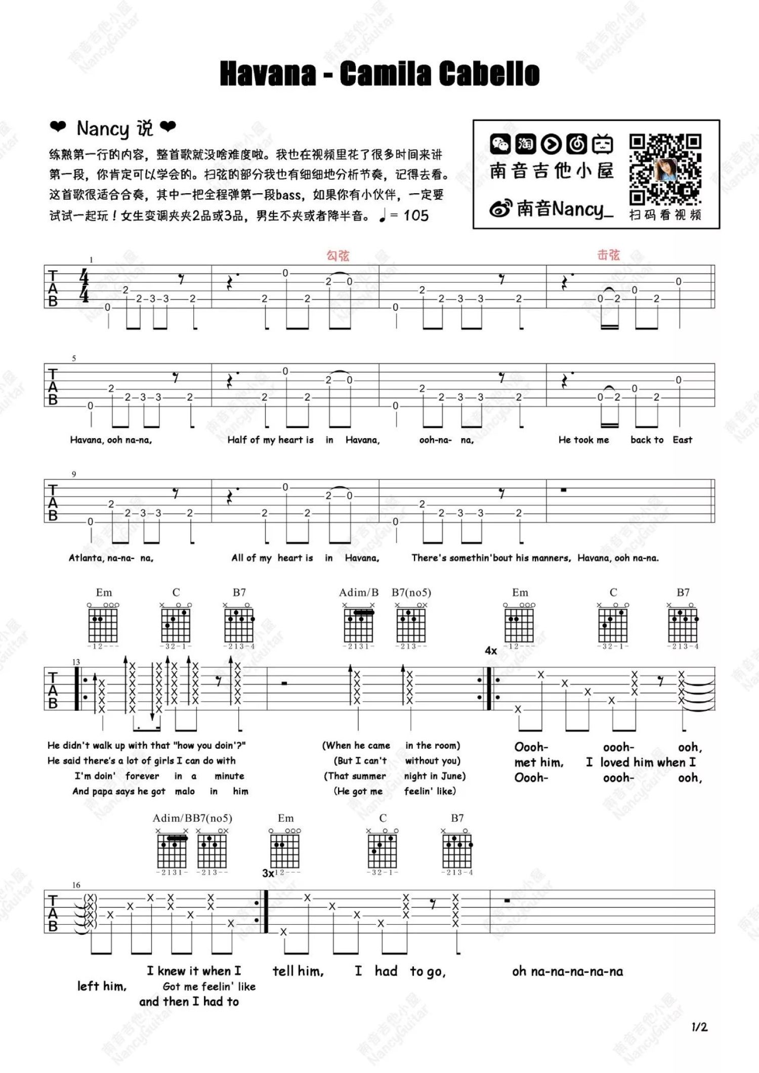 曲谱介绍: 《Havana》吉他谱_吉他弹唱谱