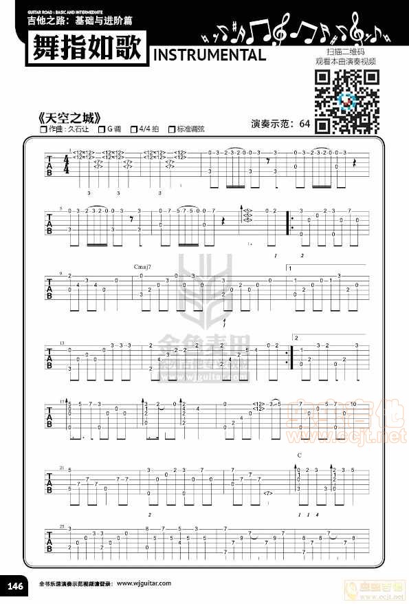 曲谱介绍: 【王坚指弹】《天空之城》吉他独奏谱,共有2张高清图谱,免翻页排版设计。