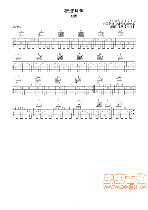 荷塘月色吉他谱 - 荷塘月色 - 吉他独奏谱