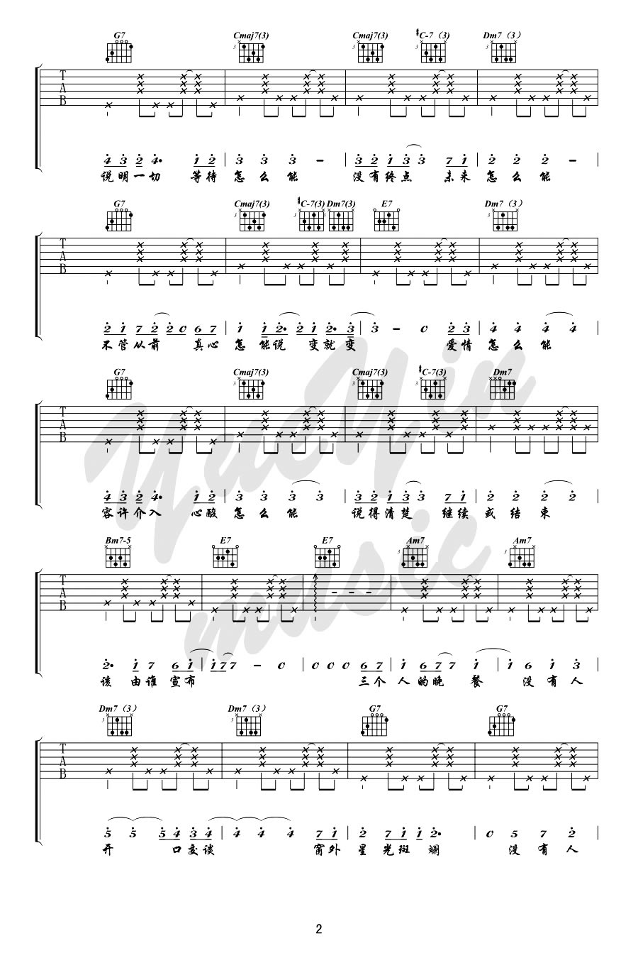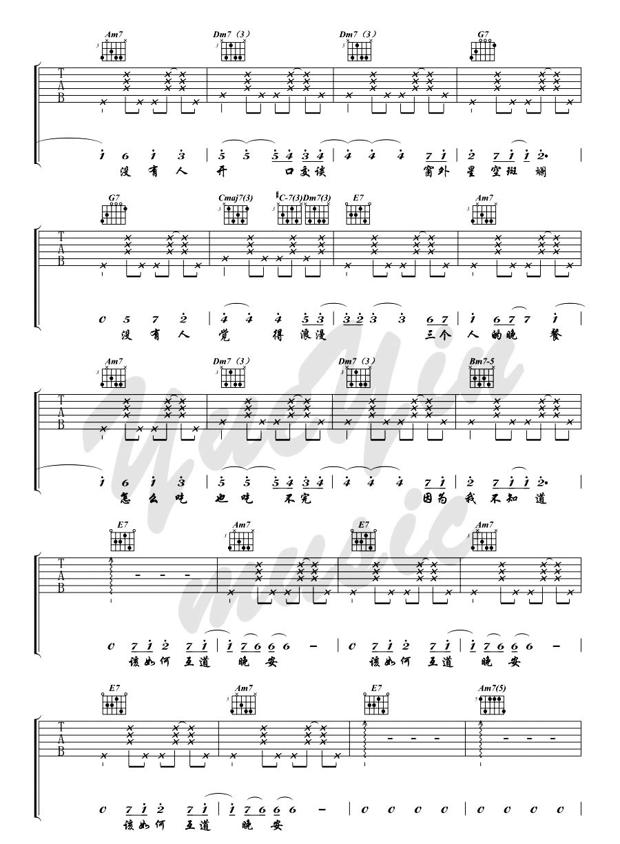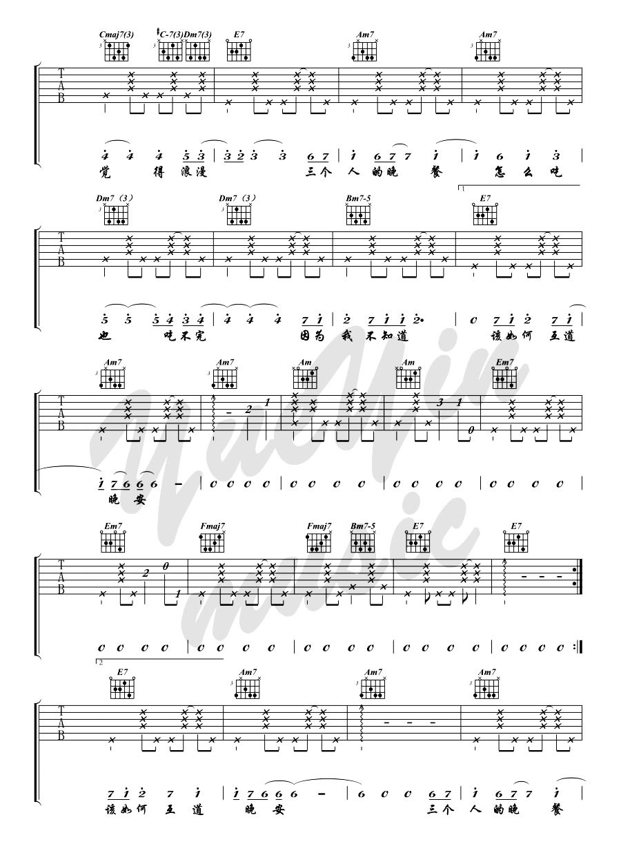 当前位置:琴谱网>吉他弹唱>三个人的晚餐 王若琳