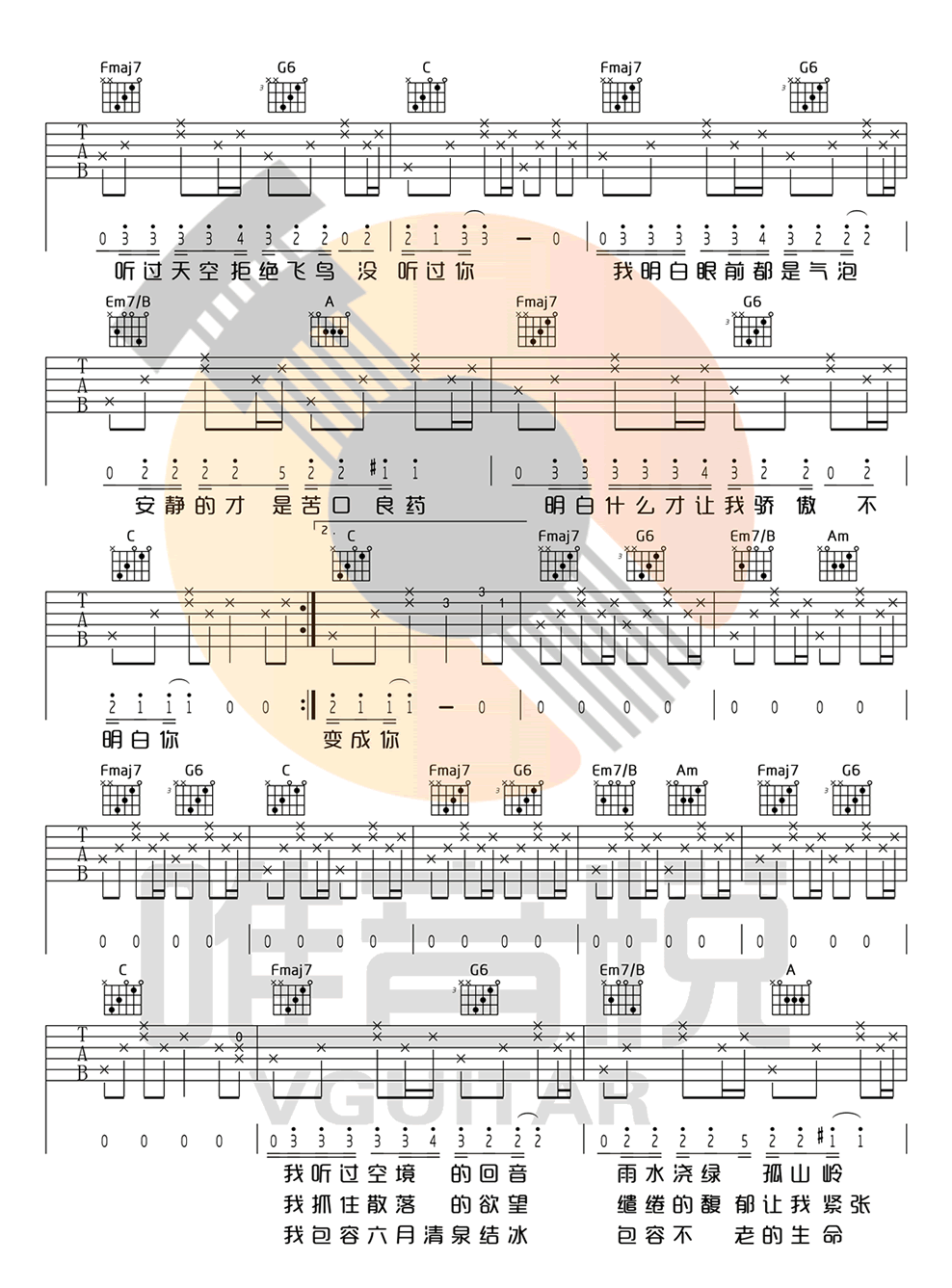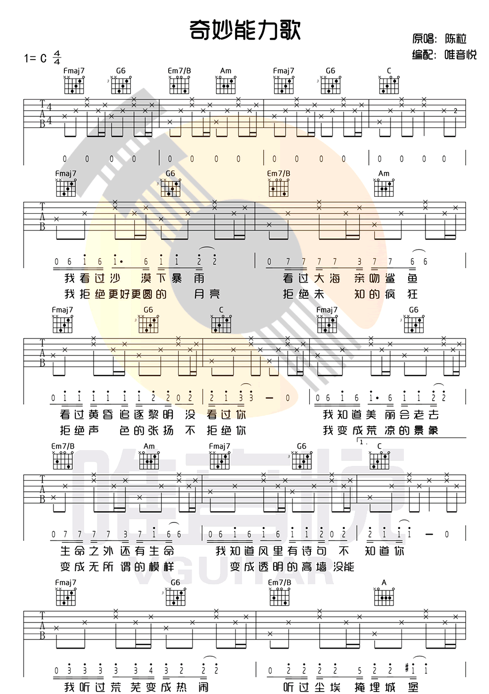 奇妙能力歌 陈粒 图片吉他谱 - 奇妙能力歌 - 吉他弹唱谱
