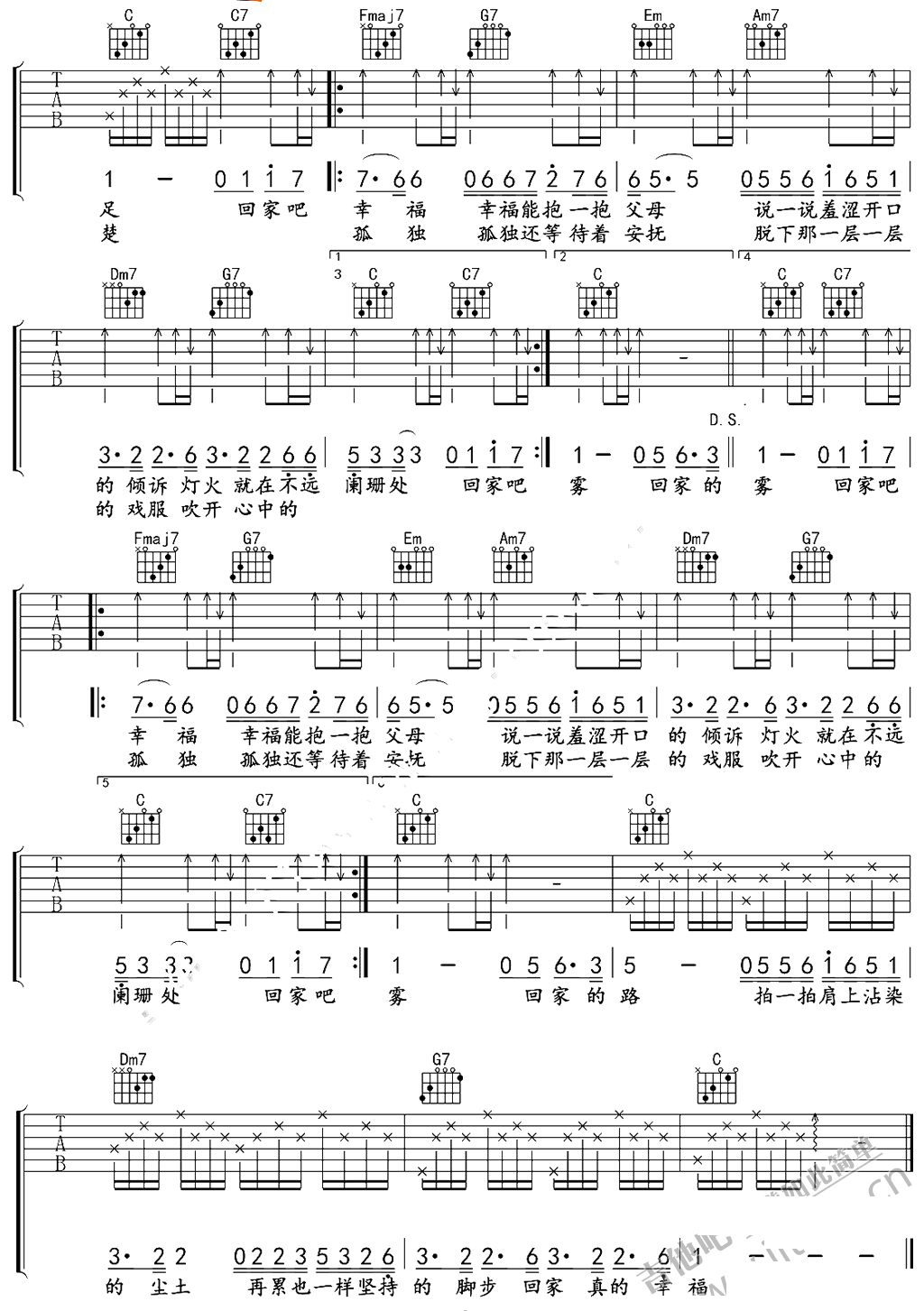 当前位置:琴谱网>吉他弹唱>回家的路 刘德华 六线
