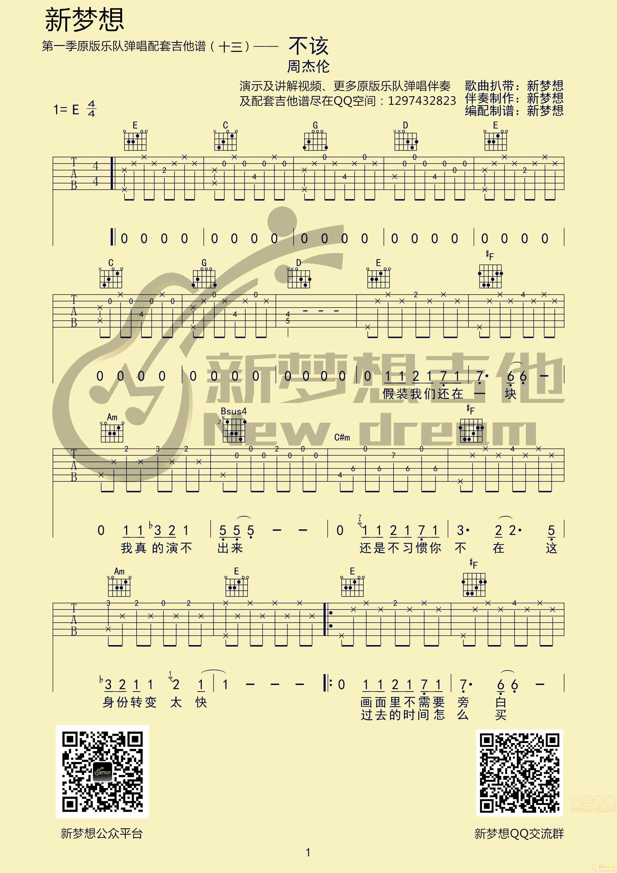 周杰伦 不该吉他谱 - 周杰伦 - 吉他弹唱谱
