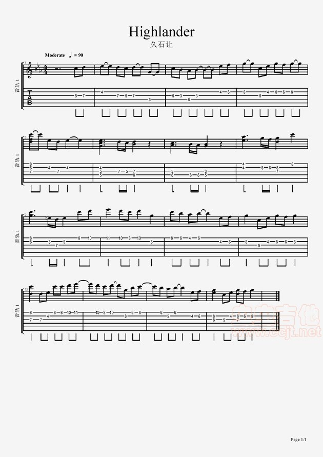 曲谱介绍: Highlander《Highlander久石让待更新》吉他弹唱谱,共有1张高清图谱,免翻页排版设计。