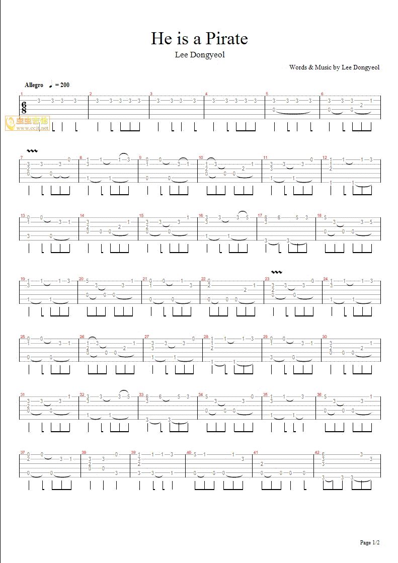 加勒比海盗吉他谱 - 加勒比海盗|he's - 吉他弹唱谱