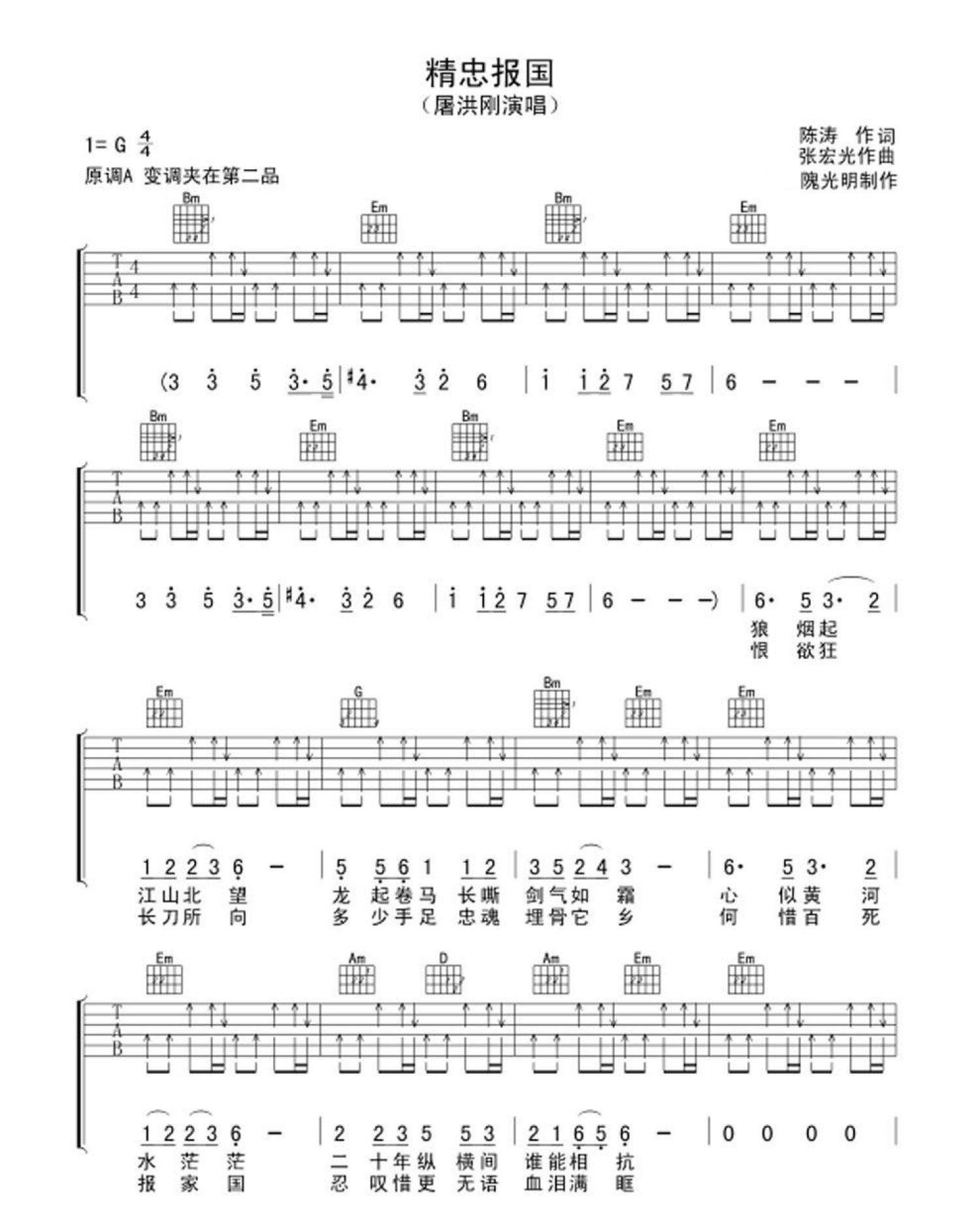 精忠报国吉他谱 - 屠洪刚 - G调吉他弹唱谱