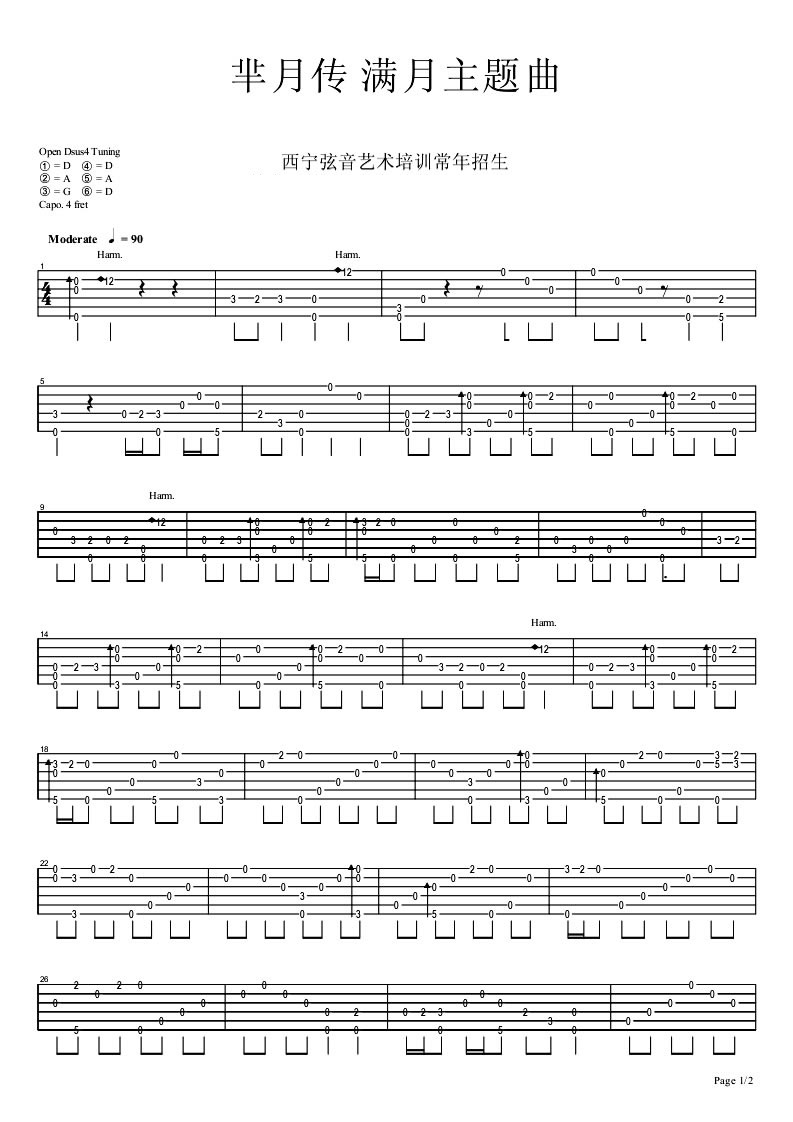 曲谱介绍: 满月吉他指弹谱,电视剧《芈月传》主题曲吉他独奏谱,感谢西宁弦音乐艺术培训何向文老师编配。《满月》旋律温柔悠扬,古典中国风浓郁,传达出一种超越生死的大情大爱。
