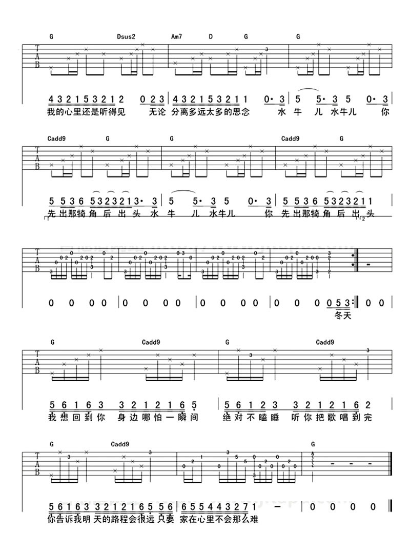 水牛儿 满江 六线吉他谱 - 水牛儿 - 吉他弹唱谱