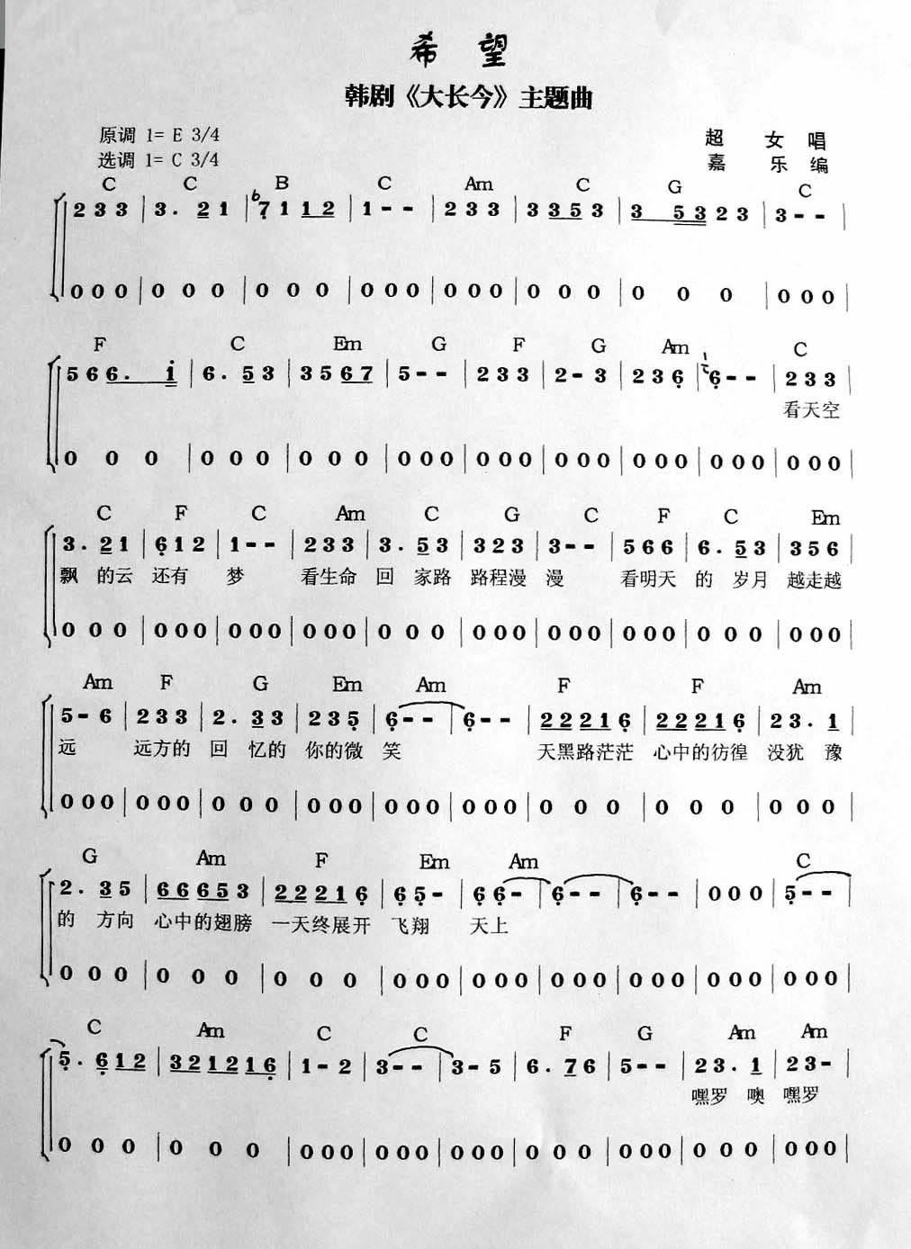 希望吉他谱 - 吉他弹唱谱