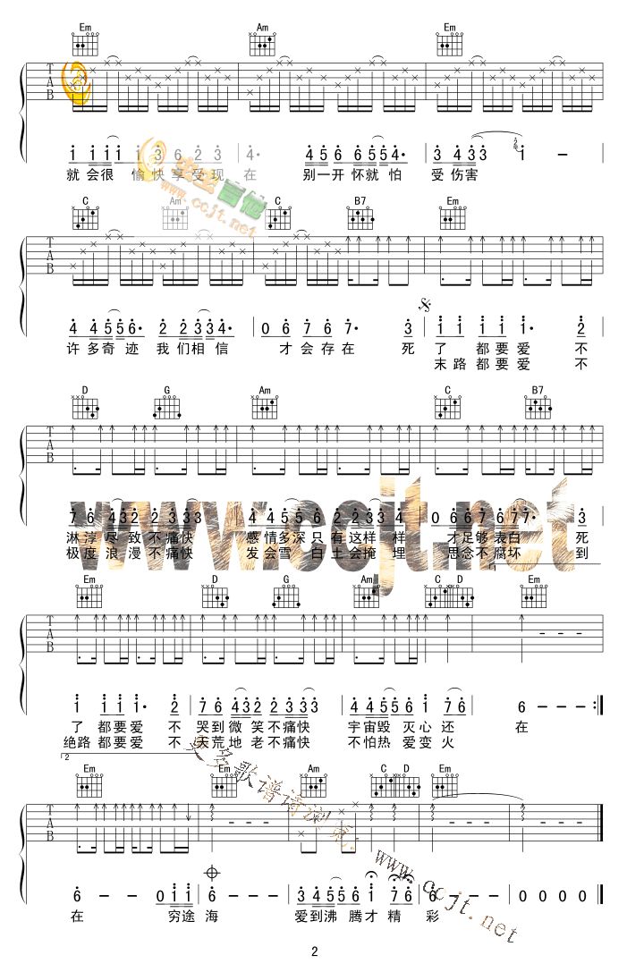曲谱介绍: 《死了都要爱》吉他弹唱谱,采用G调指法编配,共有2张高清图谱,免翻页排版设计。