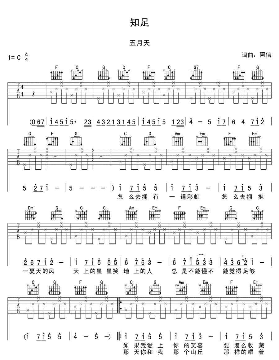 知足 五月天吉他谱 - 知足 - 吉他弹唱谱