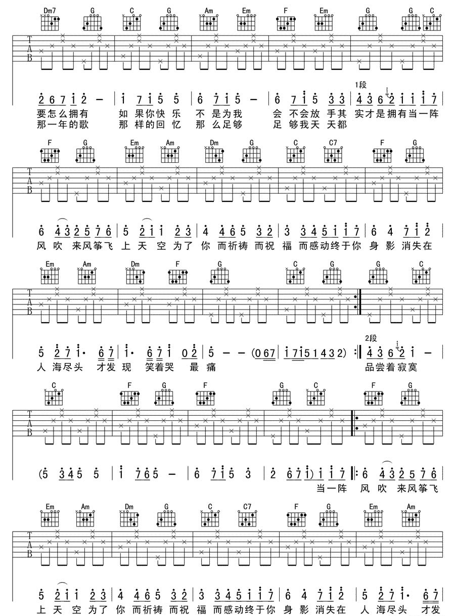 曲谱介绍: 五月天知足吉他谱,C调六线谱,知足吉他弹唱谱,五月天的歌曲总让人怀念旧时光,体会那歌词里散发的共鸣声。一阵风吹来,风筝飞上天空。满满的画面感。即使不能拥有,也会为了你,而祈祷、而祝福……其实有很多喜欢的人不能在一起,这种遗憾充斥着我们的人生。但当一阵风吹过的时候,我们就让她自由吧。