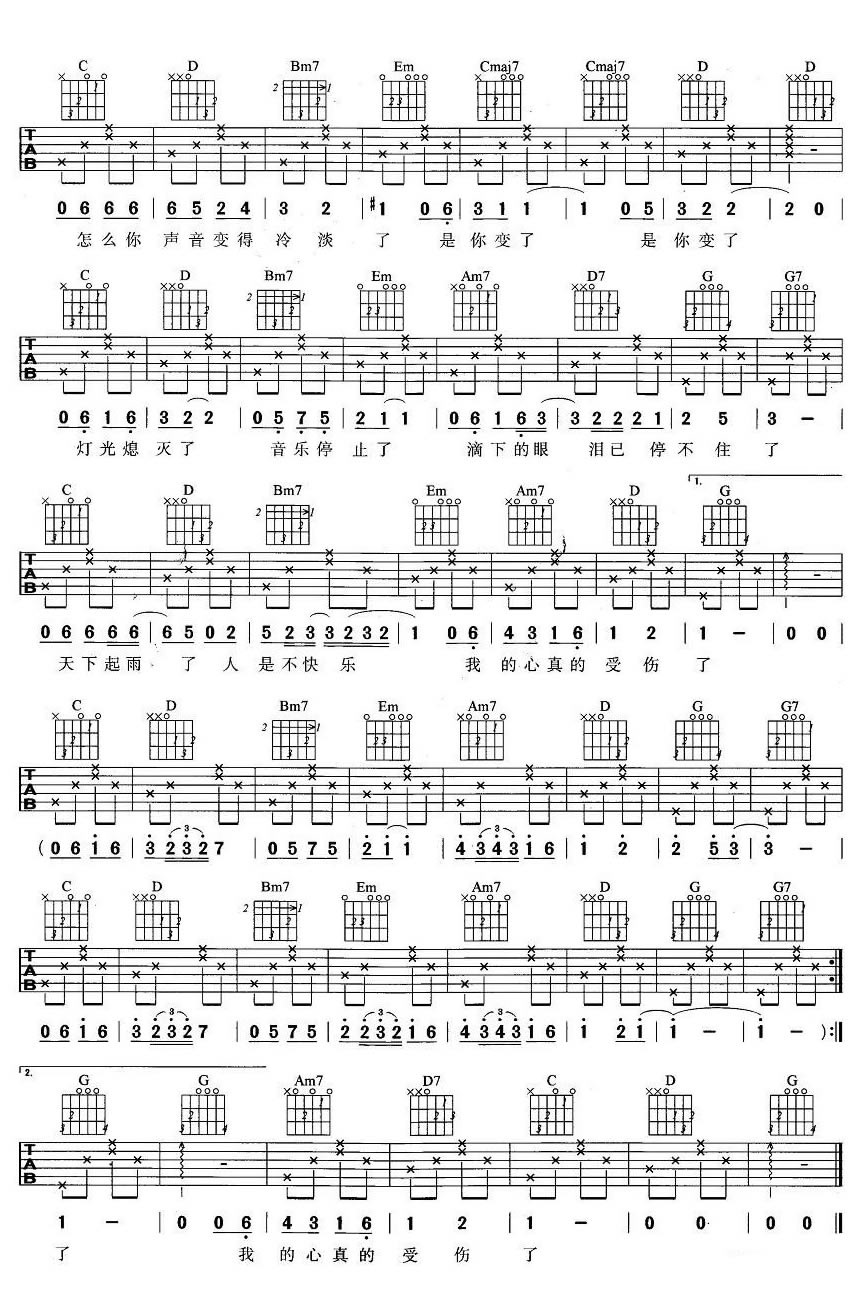 我真的受伤了 张学友 六线吉他谱 - 我真的受伤了 - 吉他弹唱谱