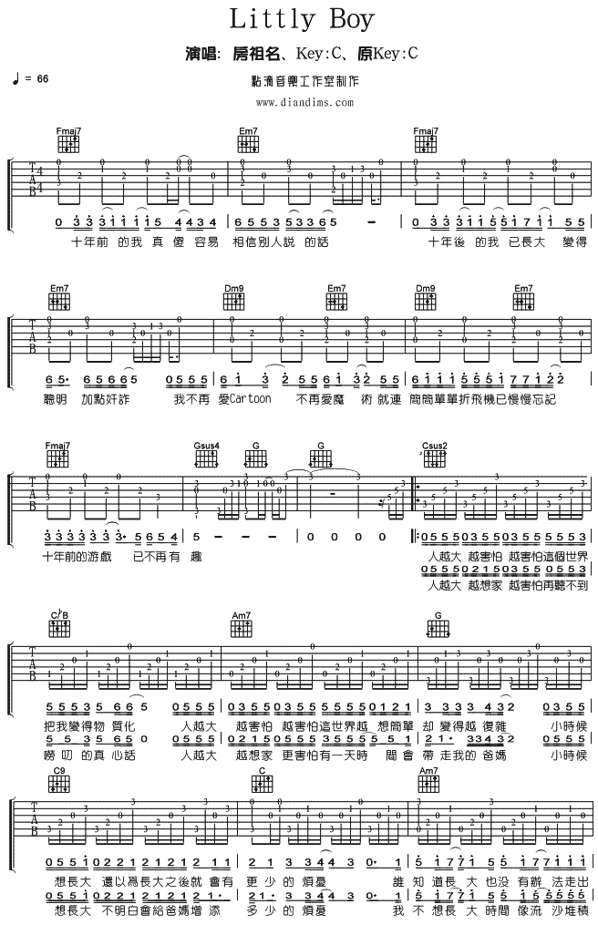 曲谱介绍: Littly《LittlyBoy》吉他弹唱谱,共有3张高清图谱。