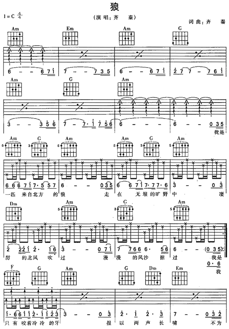狼吉他谱 - 吉他弹唱谱
