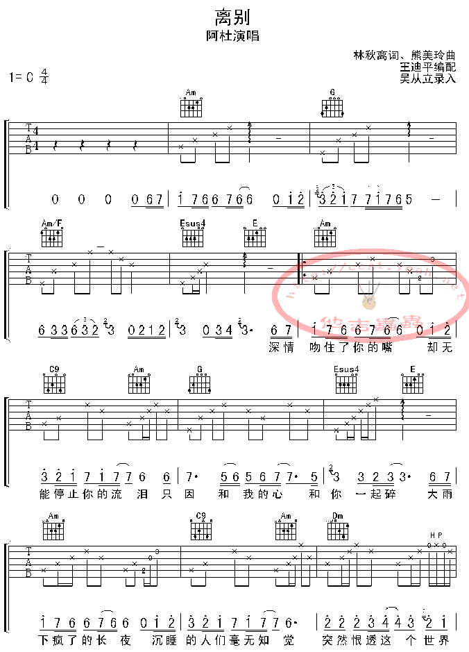 离别吉他谱 - 吉他弹唱谱