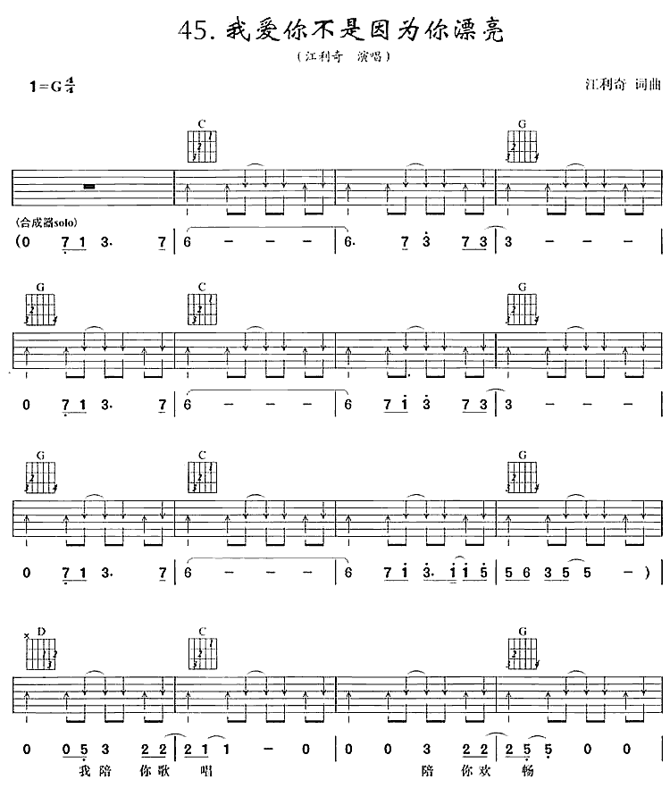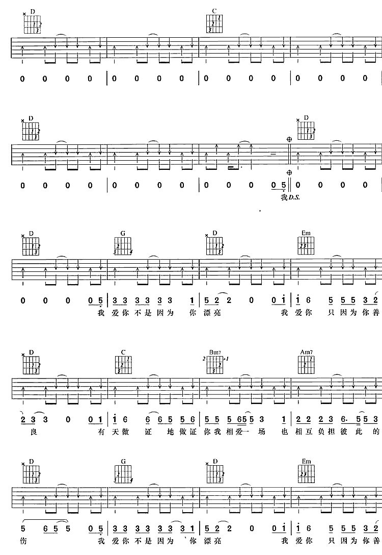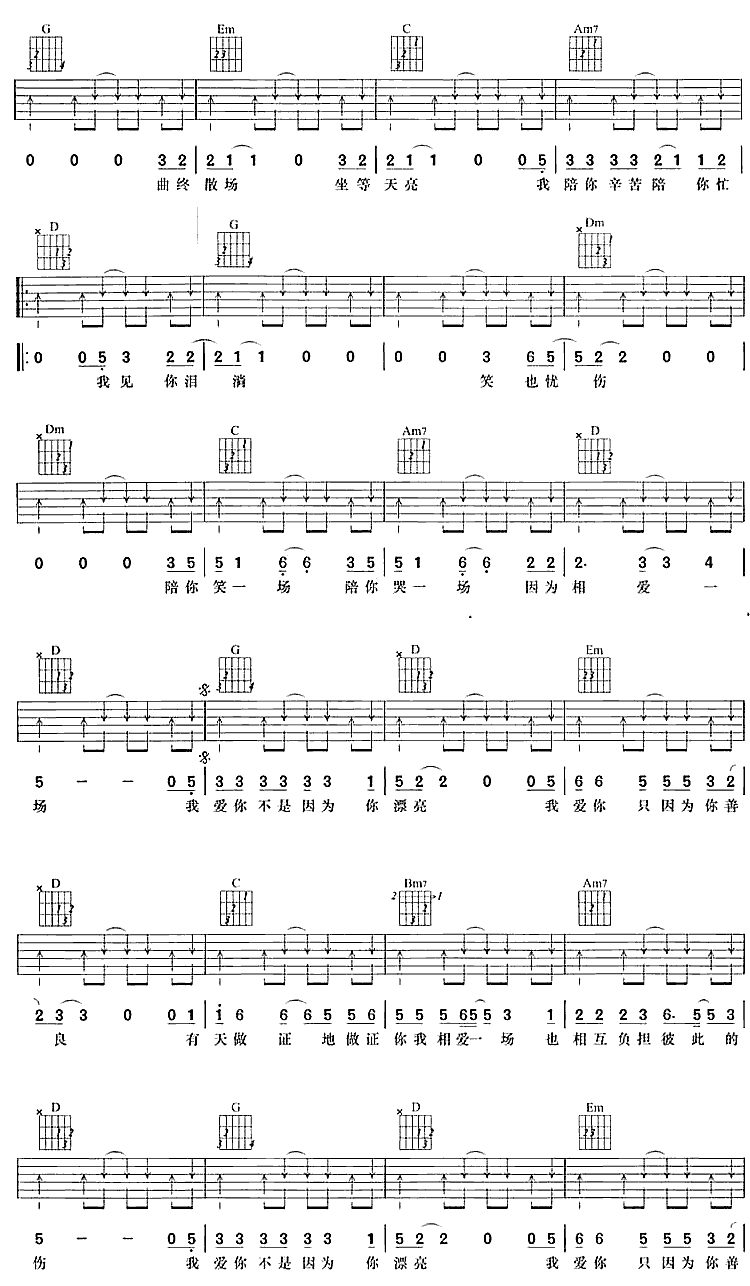 我爱你不是因为你漂亮吉他谱 - 吉他弹唱谱