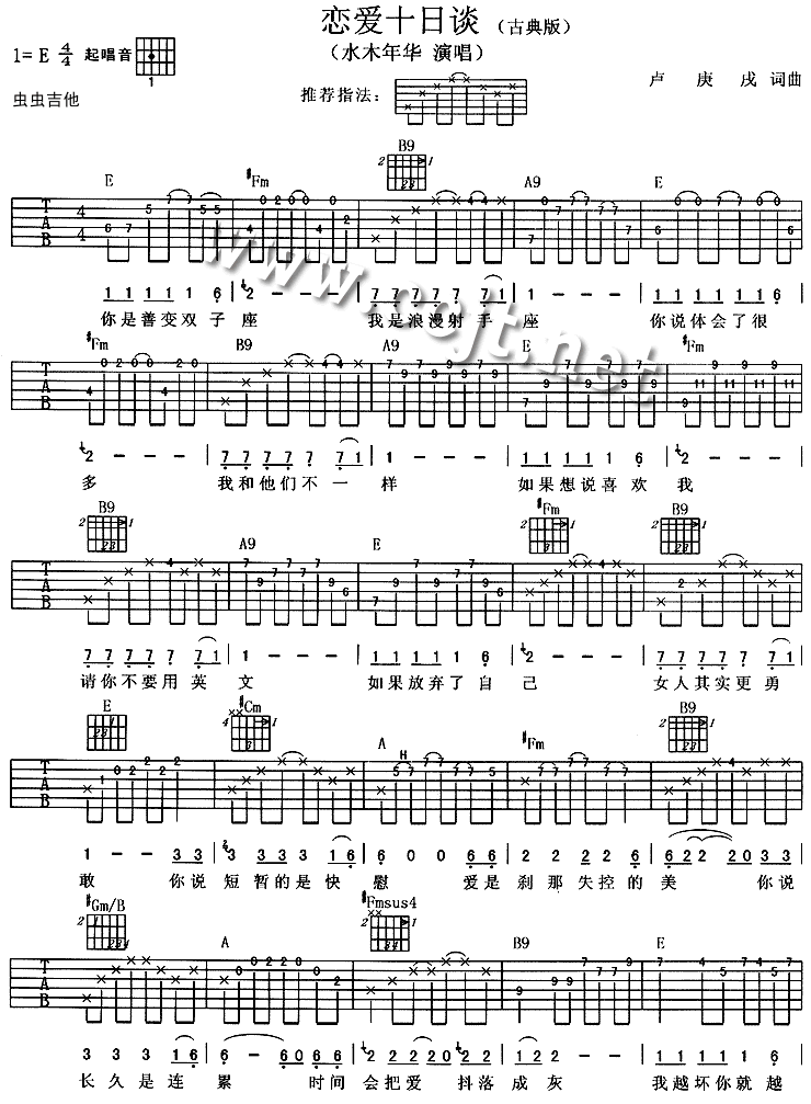 当前位置:琴谱网>吉他弹唱>恋爱十日谈