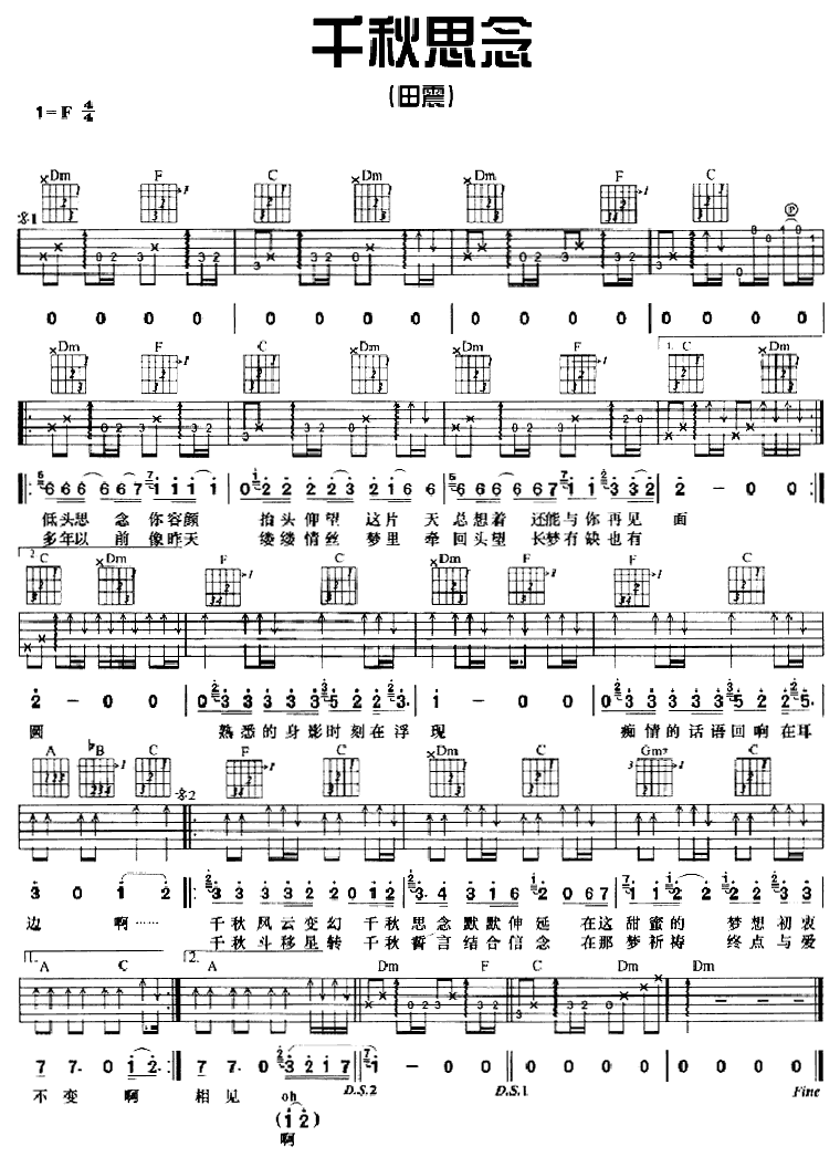 千秋思念吉他谱 - 吉他弹唱谱