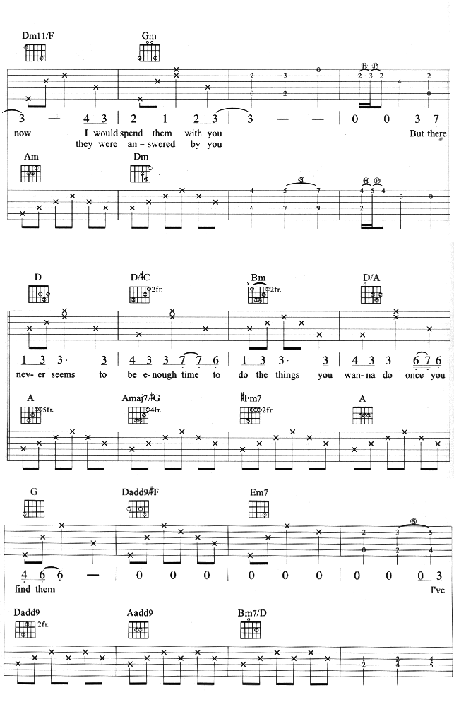 曲谱介绍: Tme《TmeInABottle》吉他弹唱谱,共有6张高清图谱。