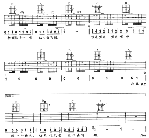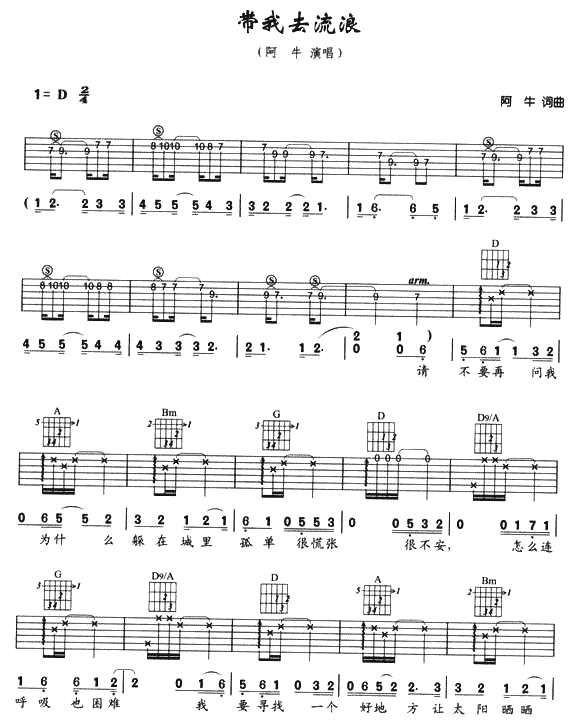 曲谱介绍: 《带我去流浪》吉他弹唱谱,共有3张高清图谱。