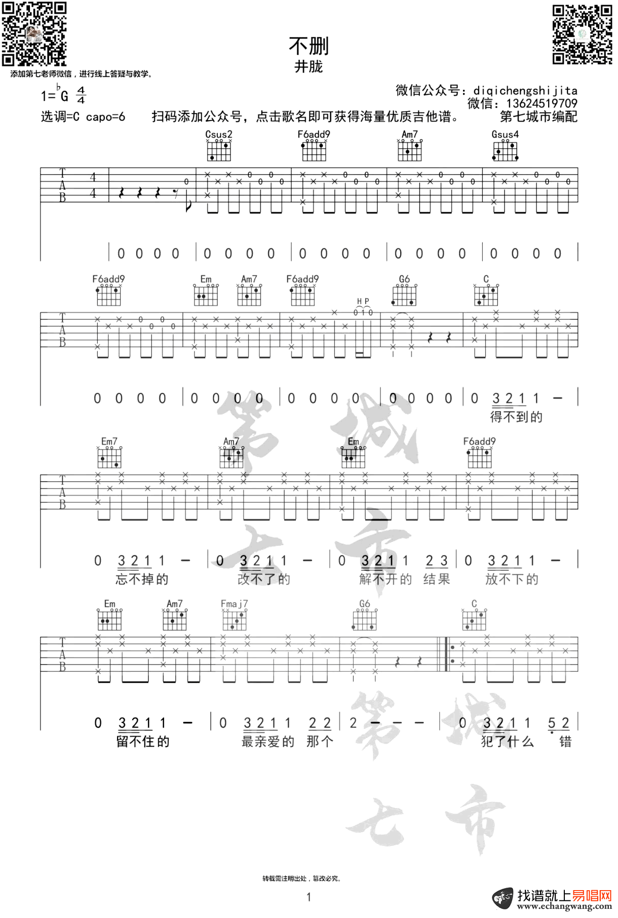 不删吉他谱 - 井胧 - 吉他弹唱谱