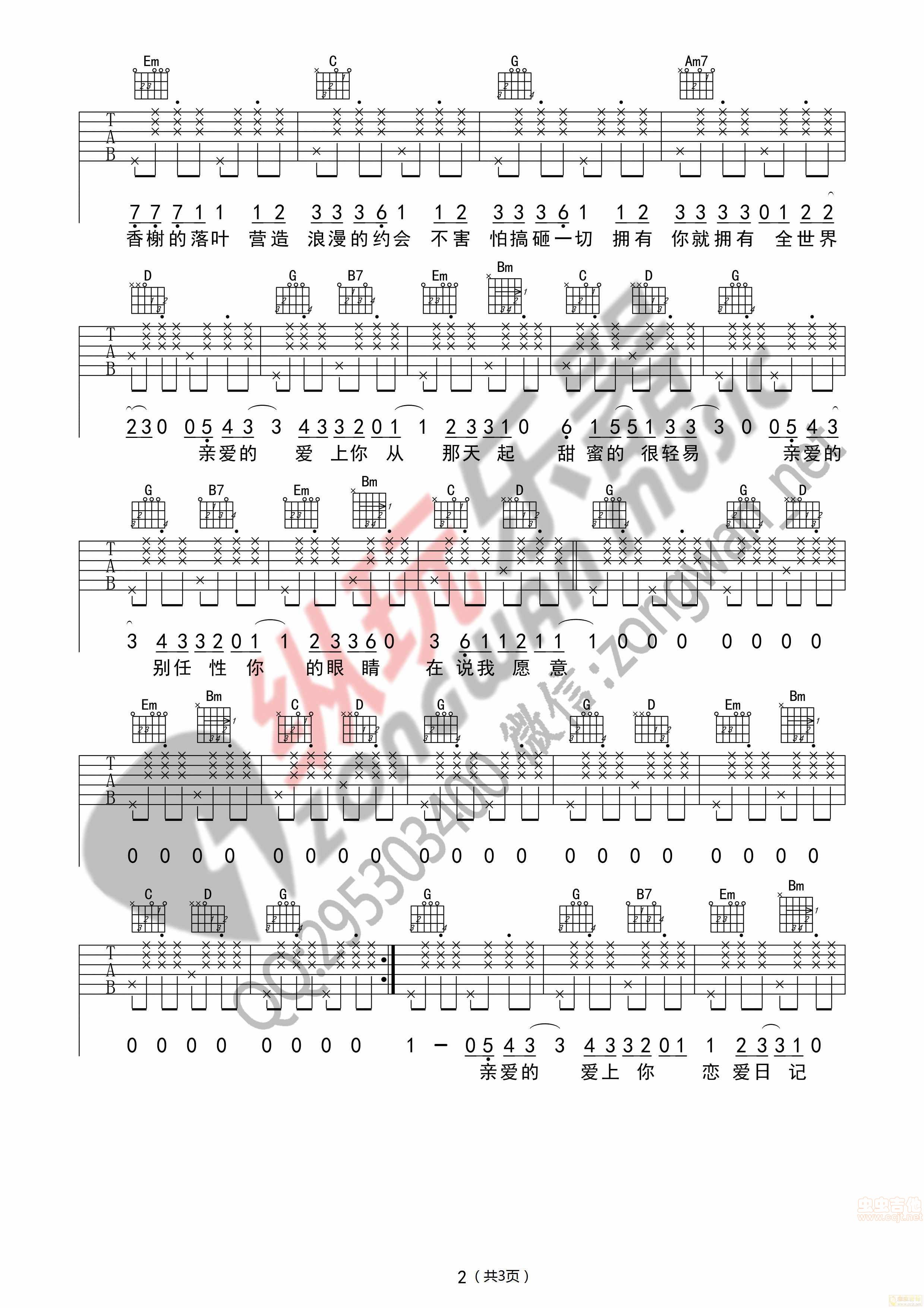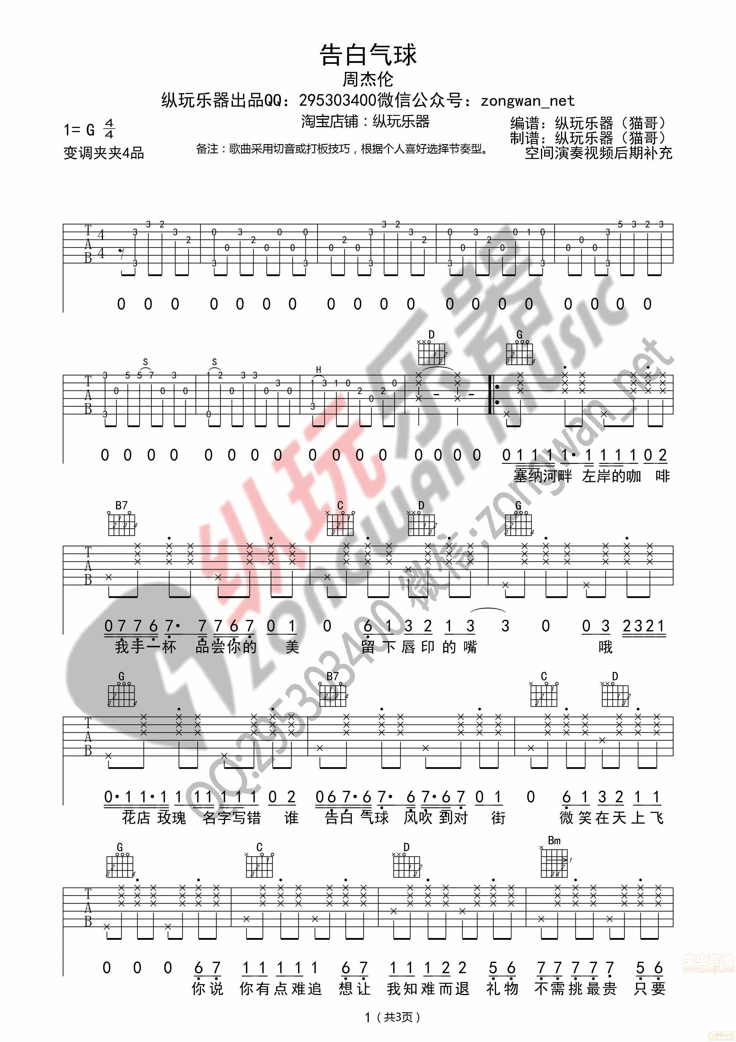 曲谱介绍: 《告白气球》吉他弹唱谱,共有3张高清图谱。