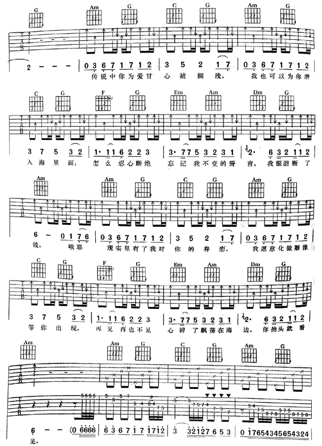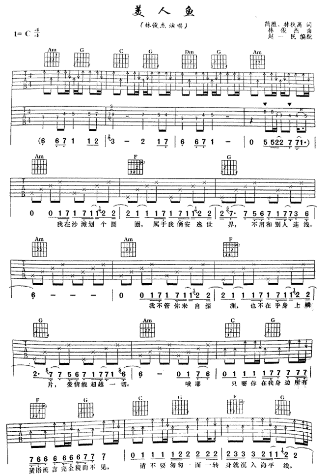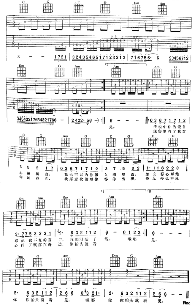 曲谱介绍: 《美人鱼》吉他弹唱谱,共有3张高清图谱。