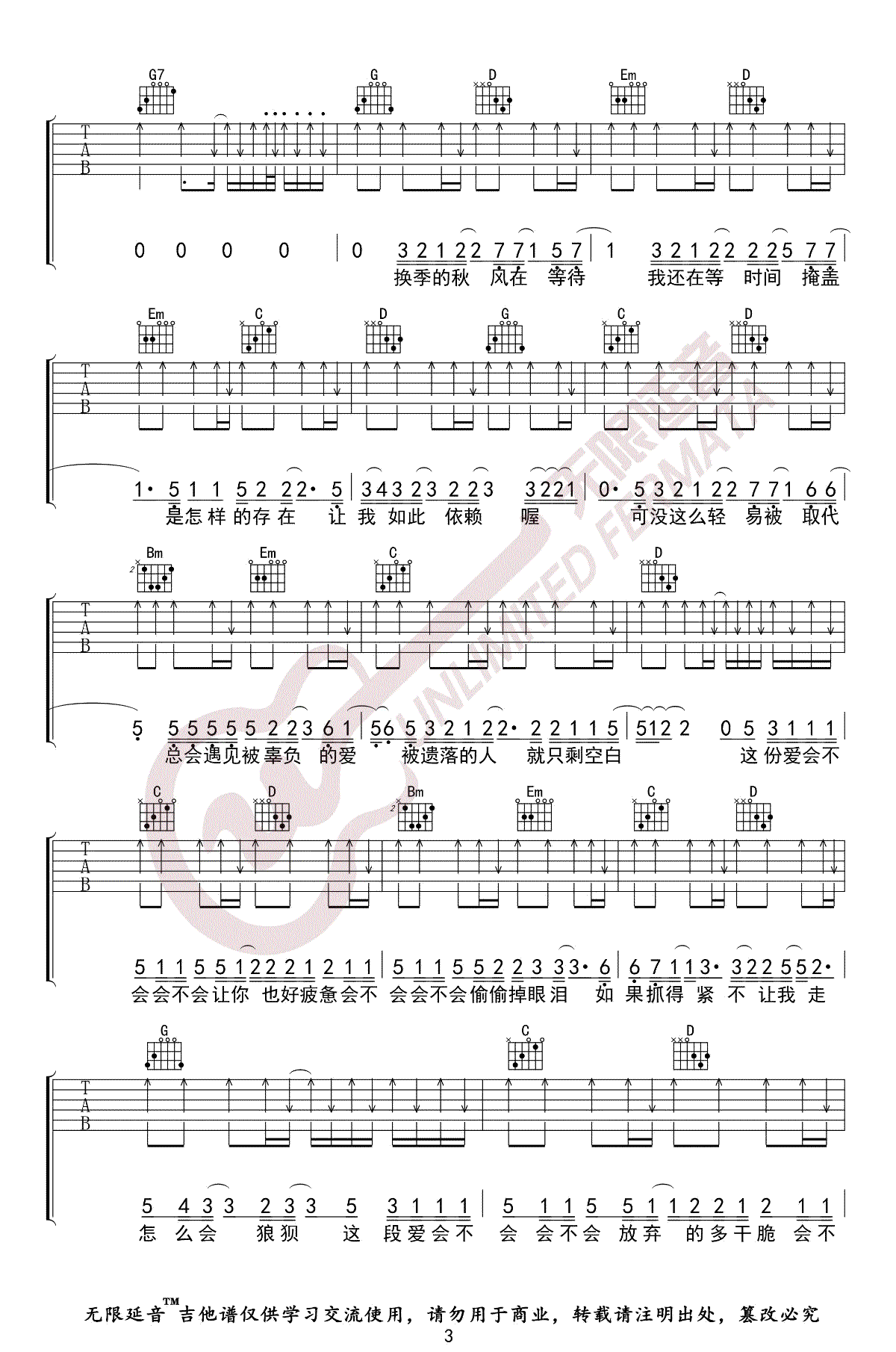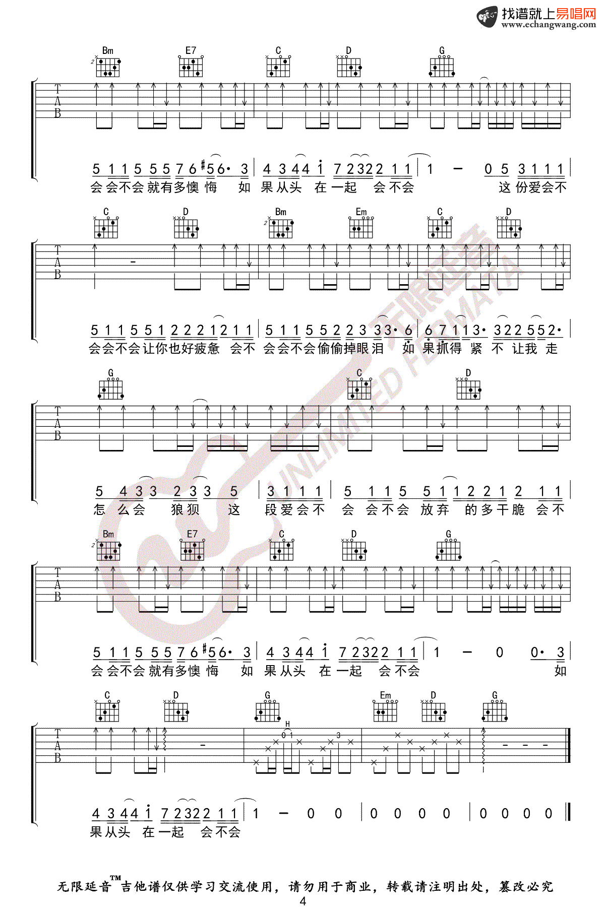曲谱介绍: 刘大壮《会不会》吉他弹唱谱,共有4张高清图谱。