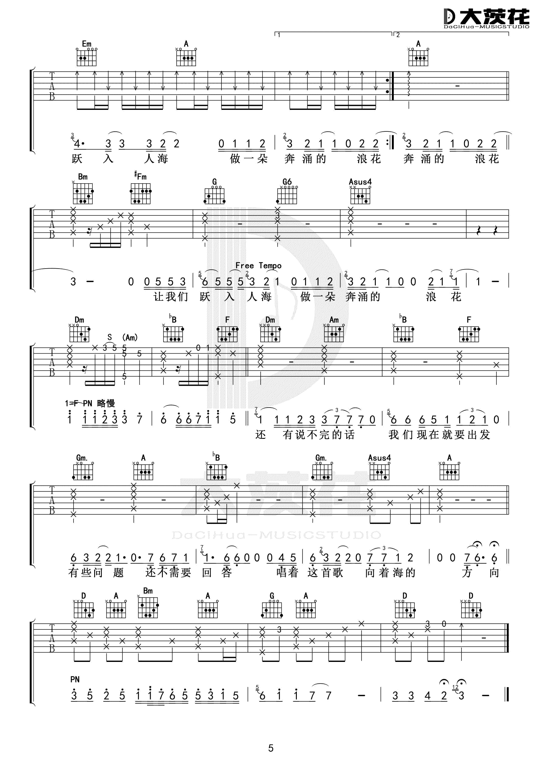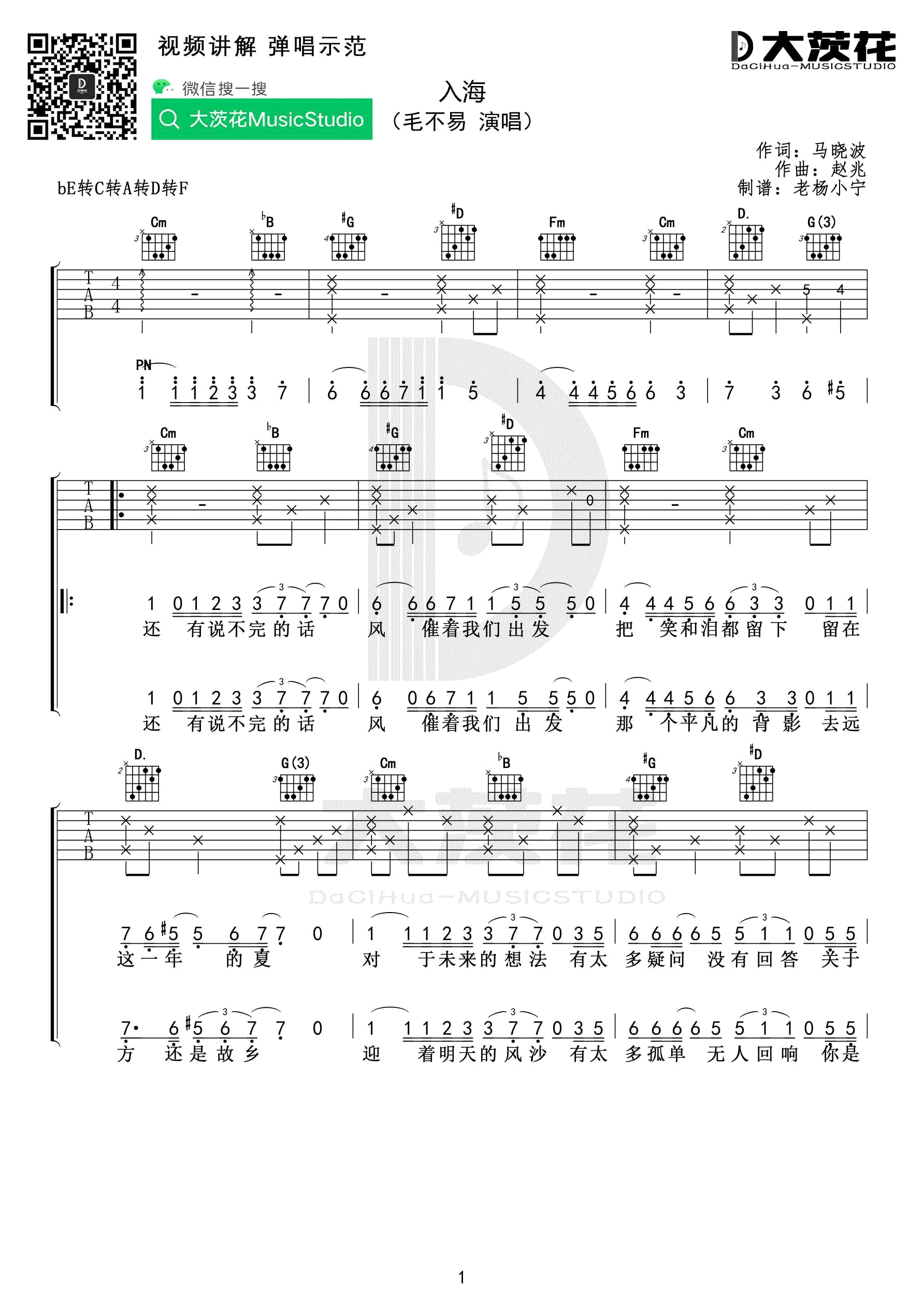 曲谱介绍: 《入海》,毛不易演唱的一首毕业季歌曲,入海六线谱,原版编配,扫弦加分解,共五张高清图片谱,大茨花音乐工作室编配出品,琴谱网网上传更新。