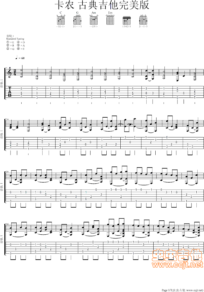 卡农 古典吉他完美版吉他谱 - 卡农 - 吉他弹唱谱