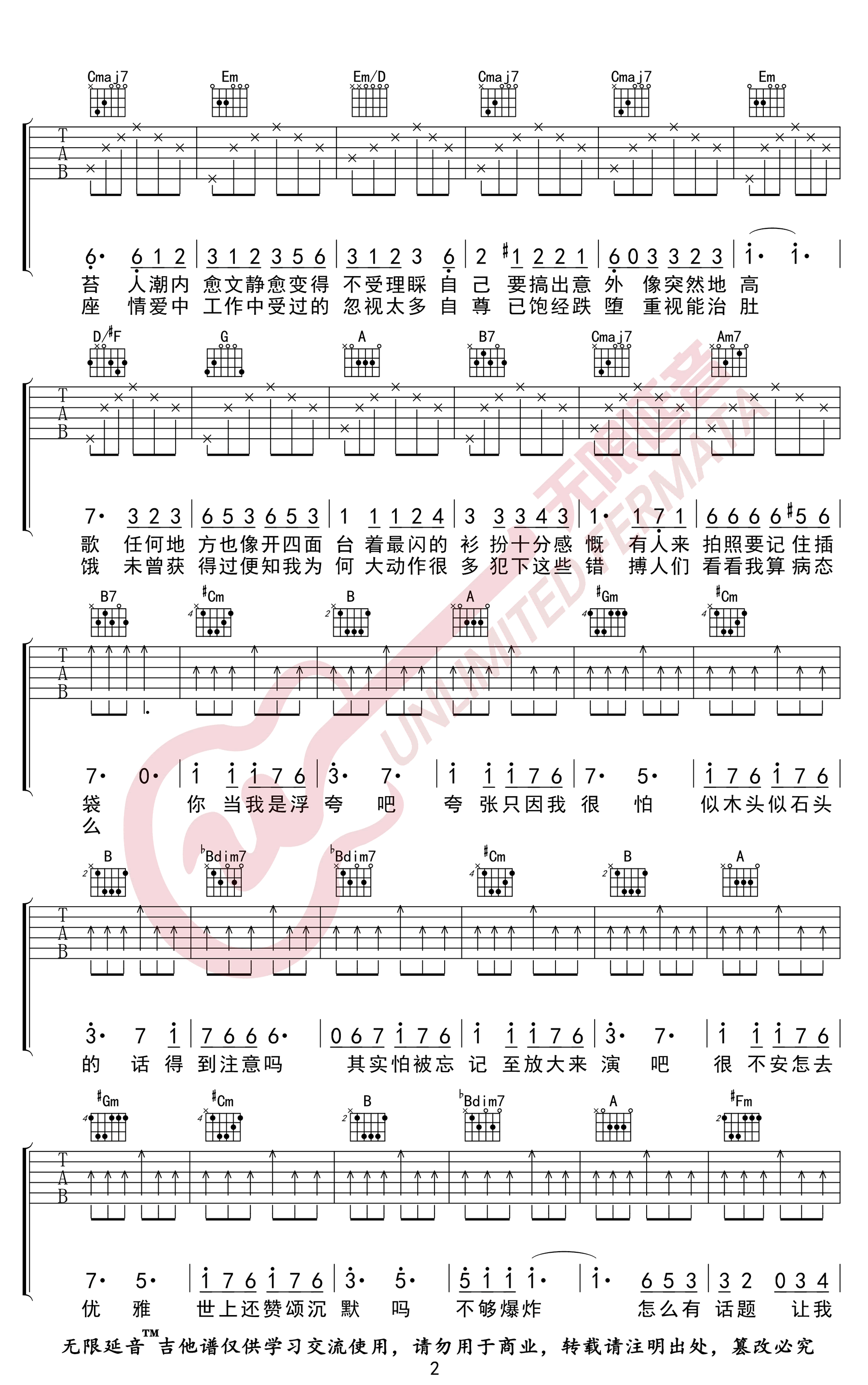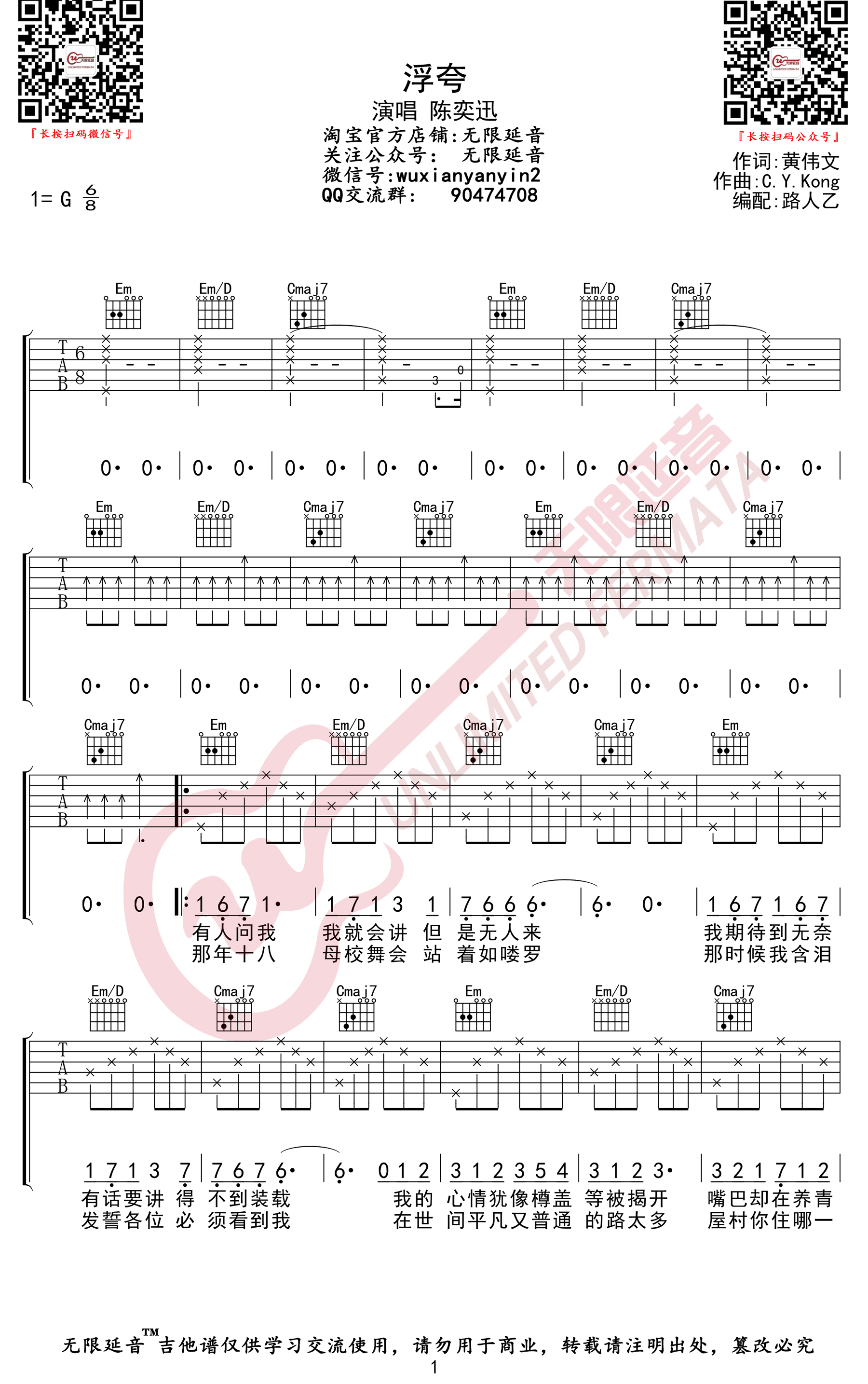 当前位置:琴谱网>吉他弹唱>浮夸
