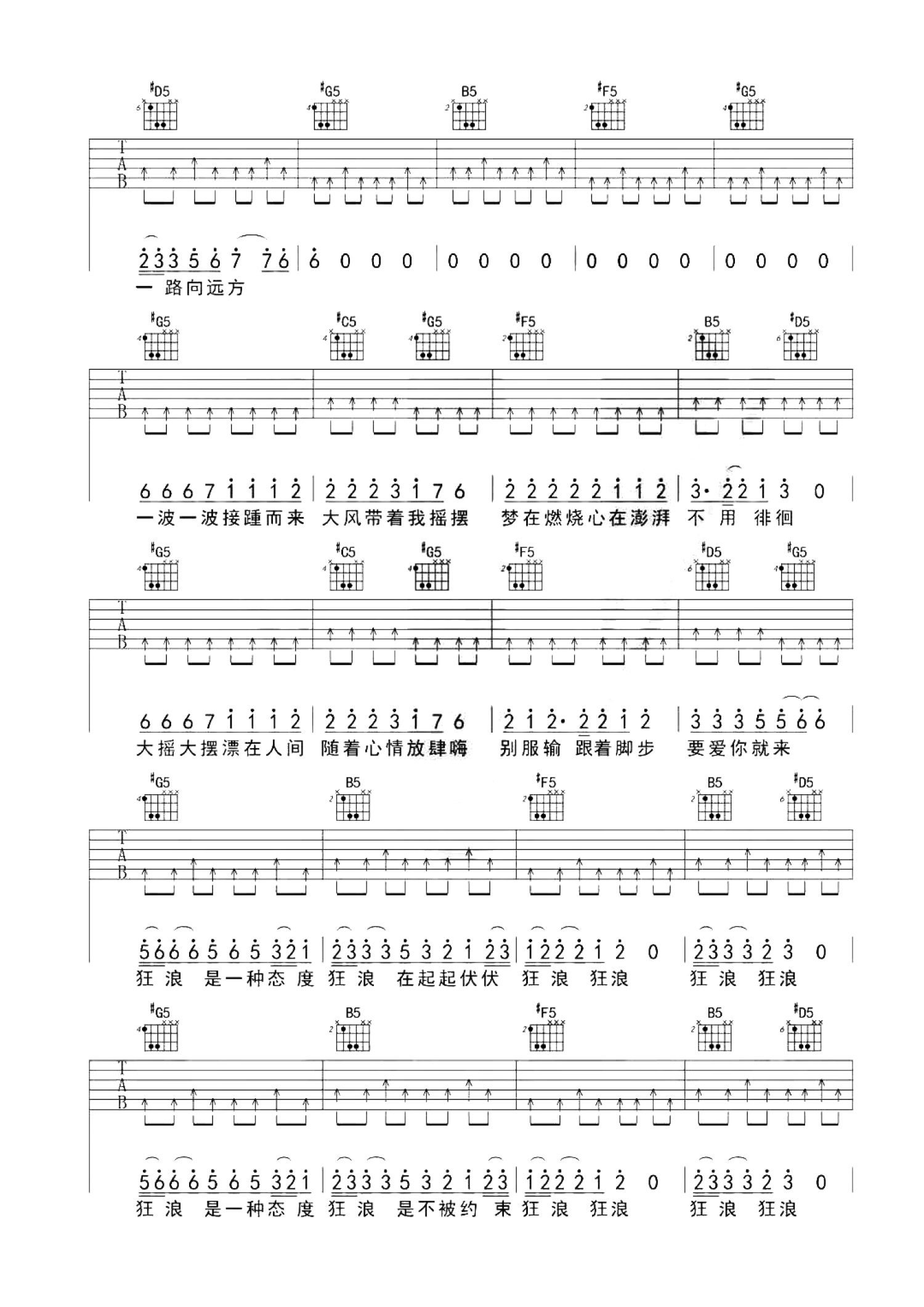 曲谱介绍: 花姐《狂浪》吉他谱_B调吉他弹唱谱